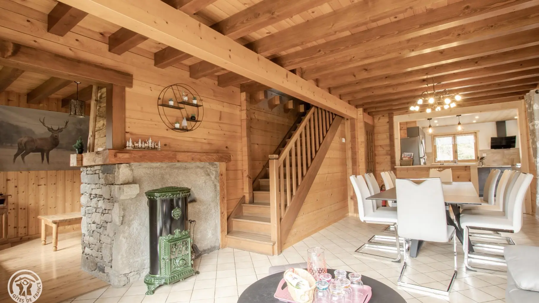 Au coeur de la vallée du Bouchet, chalet indépendant de 140 m2 sur 2 niveaux. Rdc (depuis arrière): cuisine (m-ondes), salle à manger / salon (clic-clac), poêle à bois, Ch1 (1 lit 2 pers), bains, wc. A l'étage : Ch2 (2 lits 90cm jumelables, 1 lit 1 per...