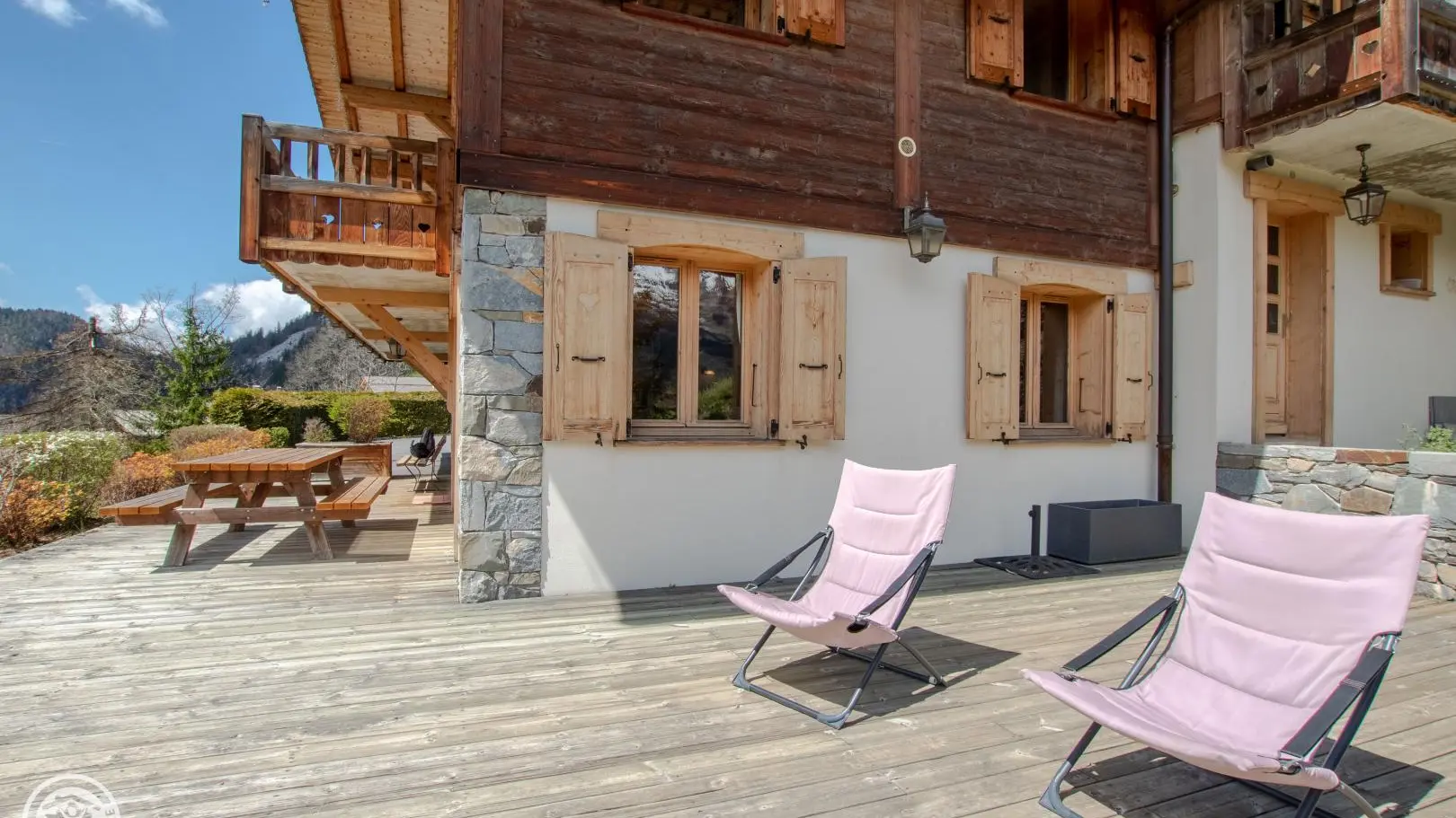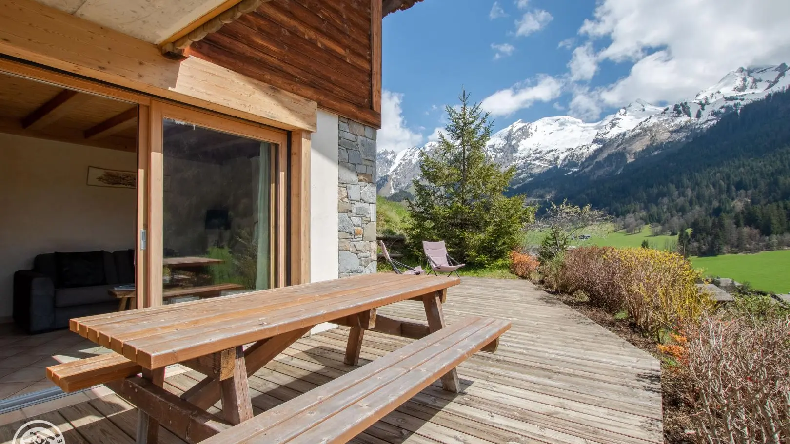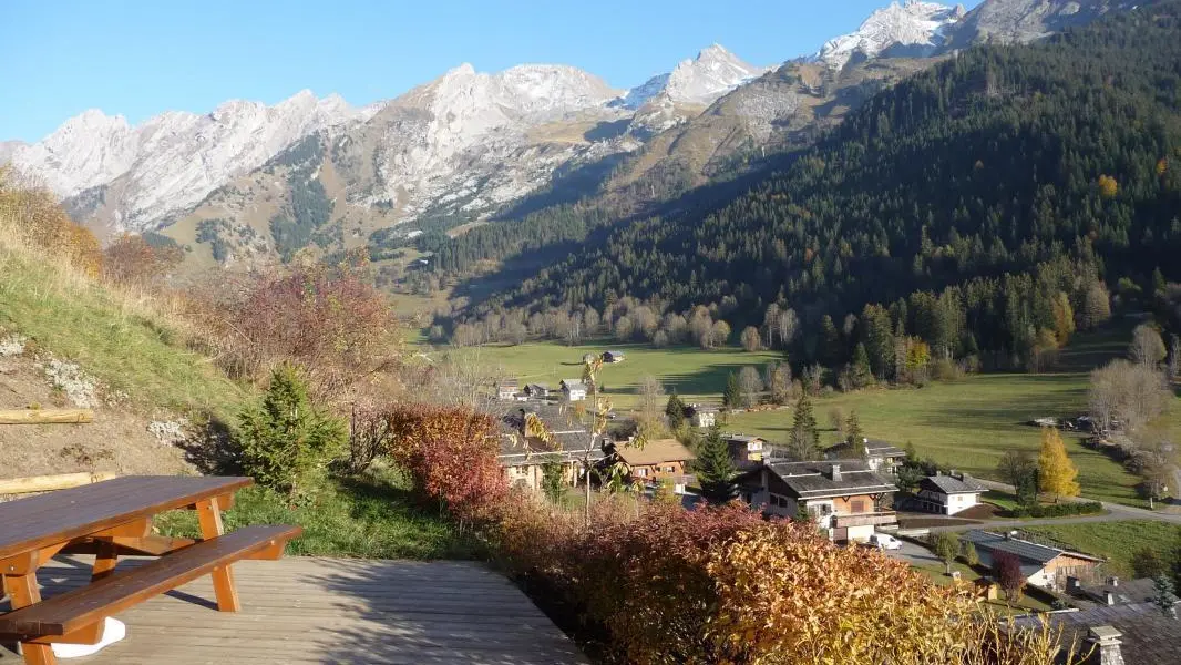 Sur les coteaux de La Clusaz, face à la chaîne des Aravis, vous profiterez d'une belle terrasse plein Sud !
