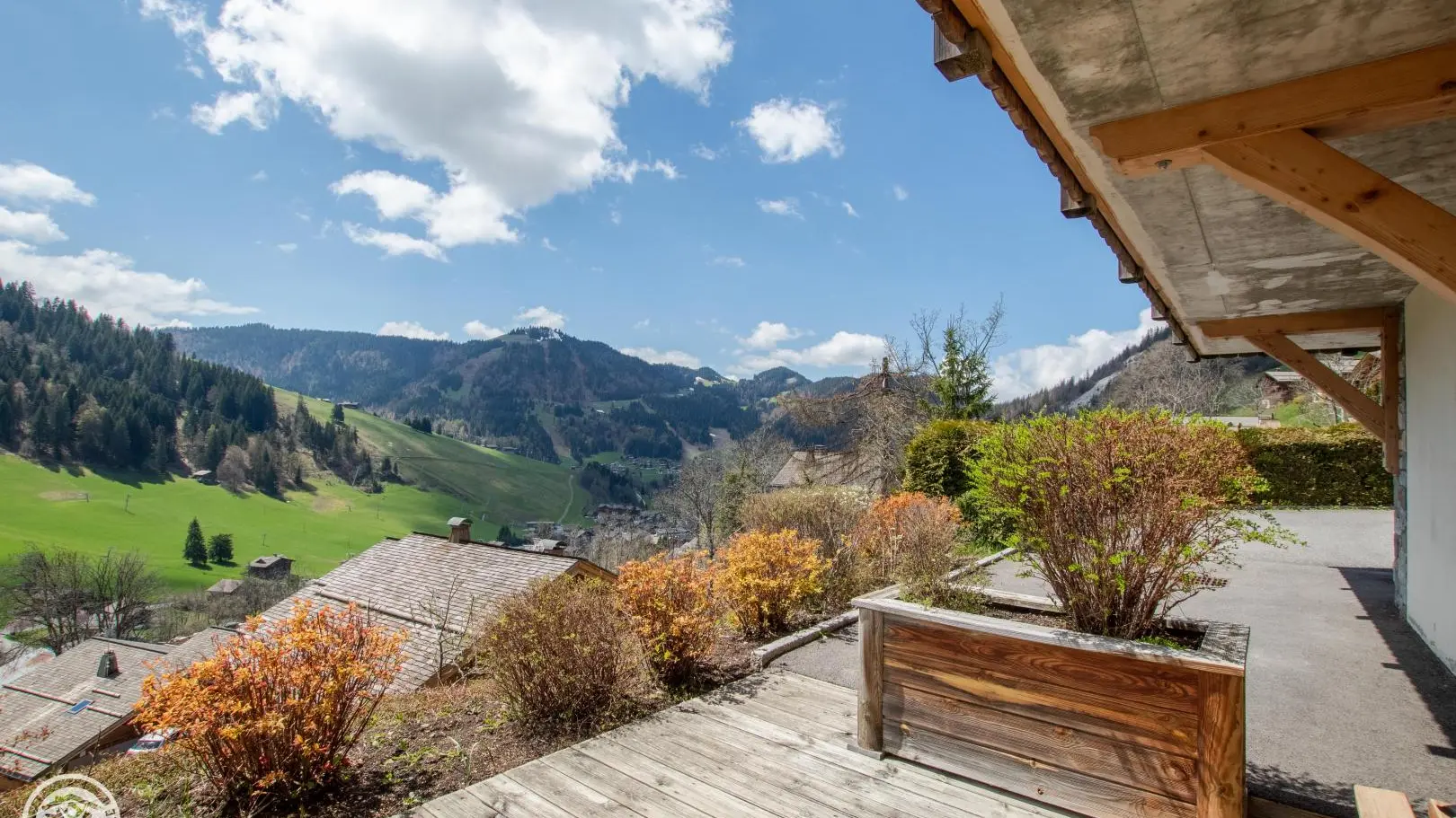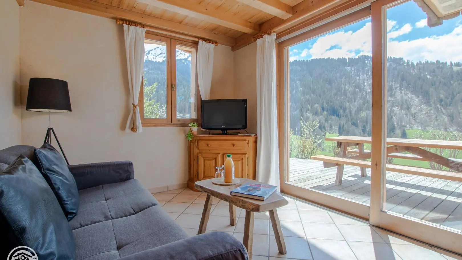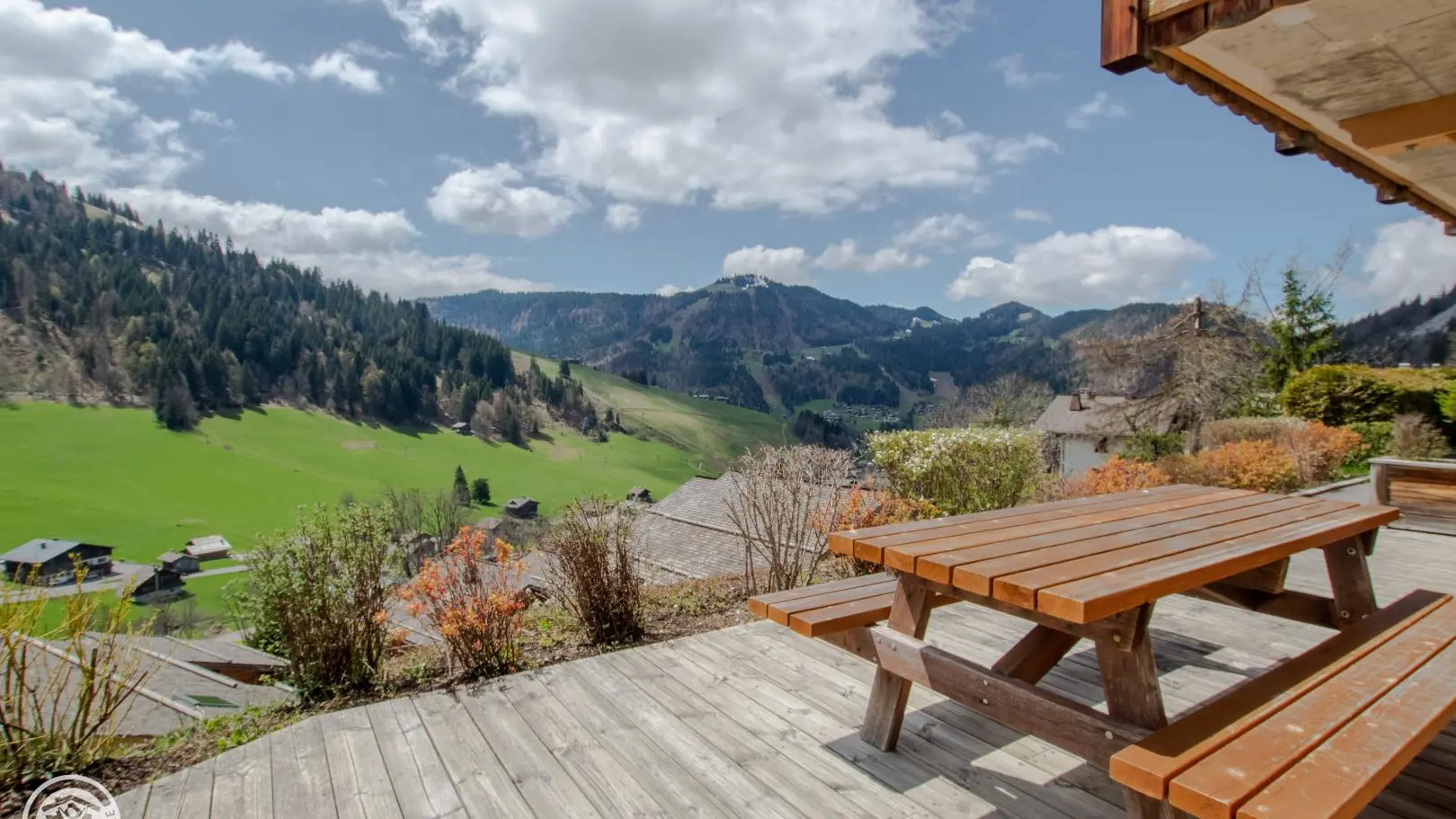 Sur les coteaux de La Clusaz, face à la chaîne des Aravis, vous profiterez d'une belle terrasse plein Sud !