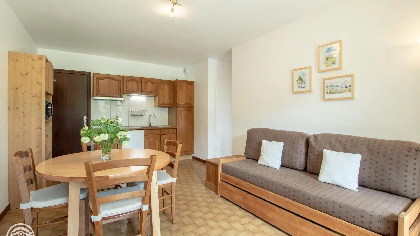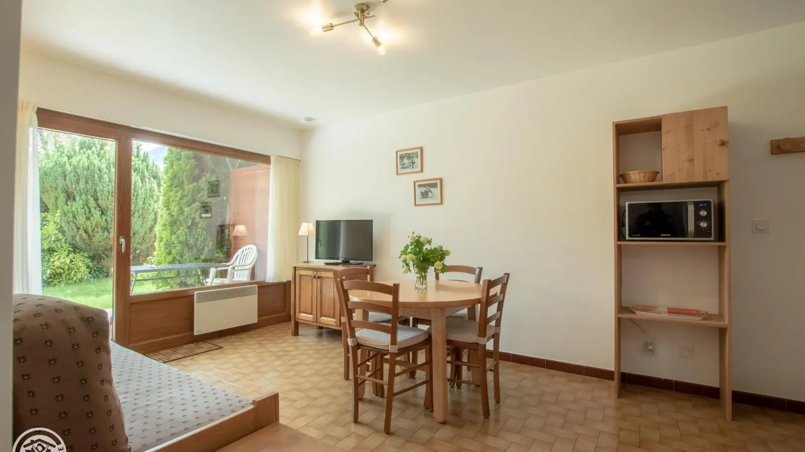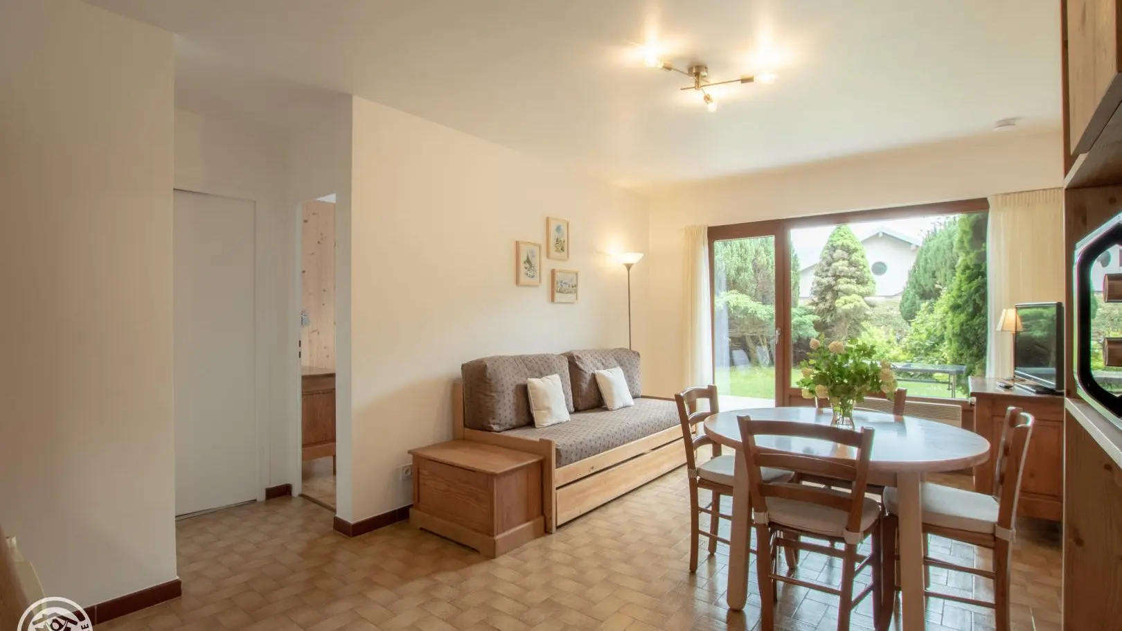 Entre lac d'Annecy et stations des Aravis, gîte de 34 m2 au RdC surélevé d'une grande maison. Coin-cuisine-séjour (2 lits gigognes 80 cm), 1 ch (1 lit 140 cm). Salle de bains, wc. Terrasse, terrain, jeux.Séjour 3 semaines -10%. Location : draps/linge d...