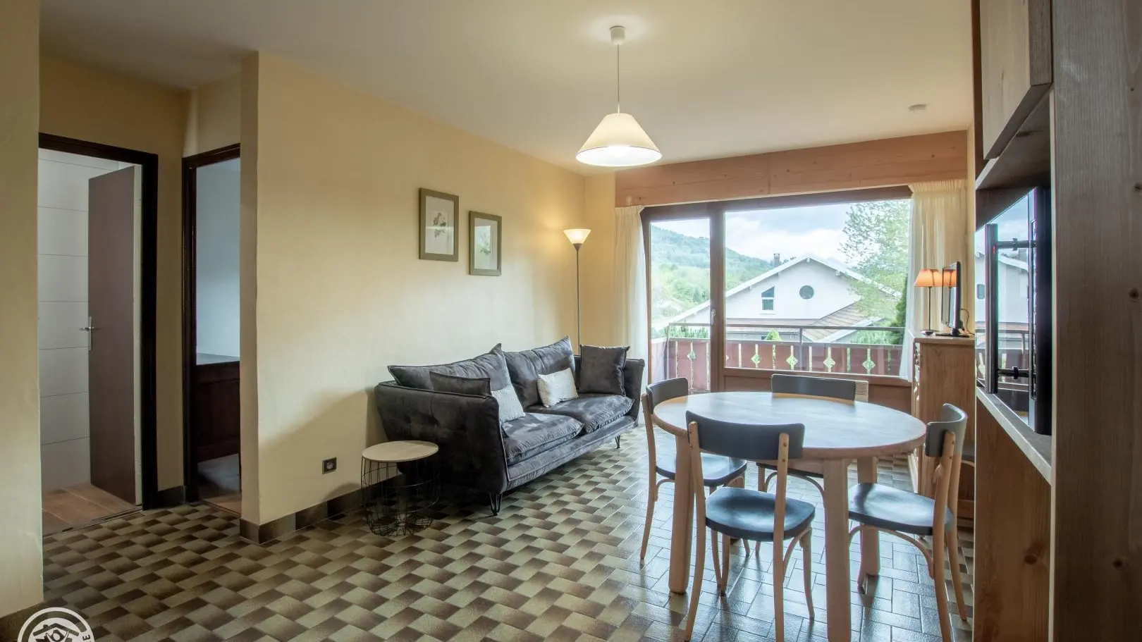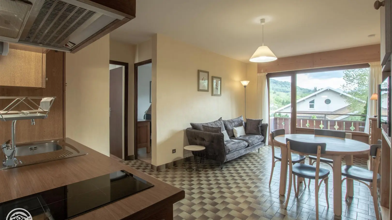 Entre lac d'Annecy et stations des Aravis, gîte de 33 m2 au 2em niveau d'une grande maison, comprenant d'autres logements. Coin-cuisine-séjour (canapé), 1 chambre (1 lit 160cm). Salle d'eau (douche), wc indépendant. Petit balcon/terrasse avec salon de jardin, terrain, jeux. Lave-linge commun. Sur demande : lit bébé et garage à vélo. Possibilité de location de draps/linge de maison/linge de toilette. Lac d'Annecy à 5 km. Stations de La Clusaz et du Grand- Bornand à 20 km, Manigod, La Croix Fry à 15 km. Château de Menthon Saint Bernard à 5 km.