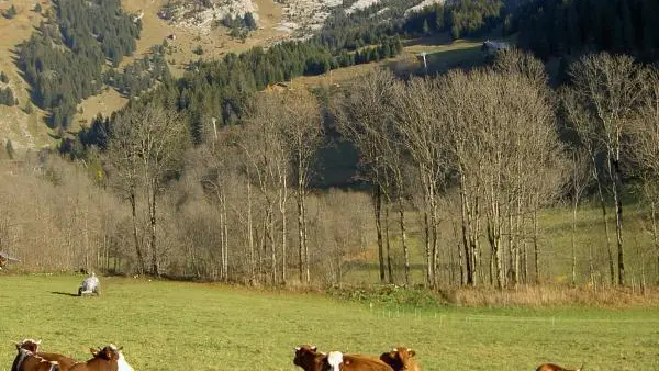 Vue imprenable sur la chaîne des Aravis et les sentiers piétonniers de la vallée.