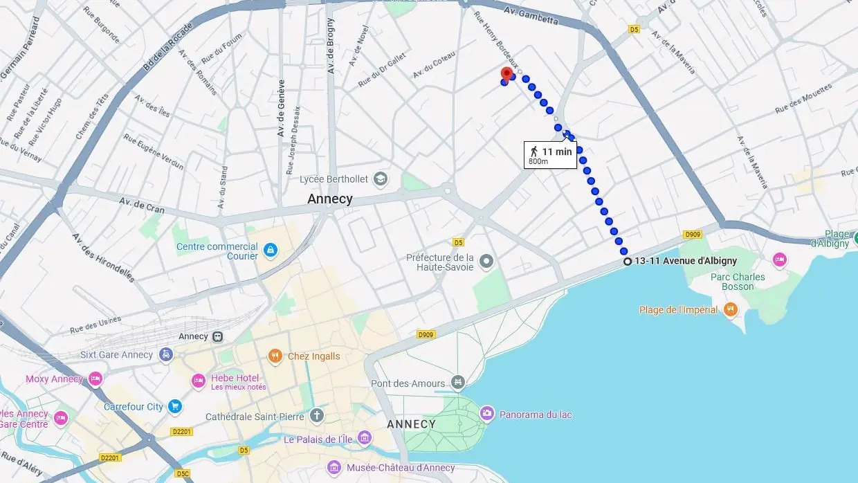 Vielle ville d'Annecy à 1,3km (15 minutes à pieds environ) : sites touristiques, restaurants, cinéma, gare SNCF...
