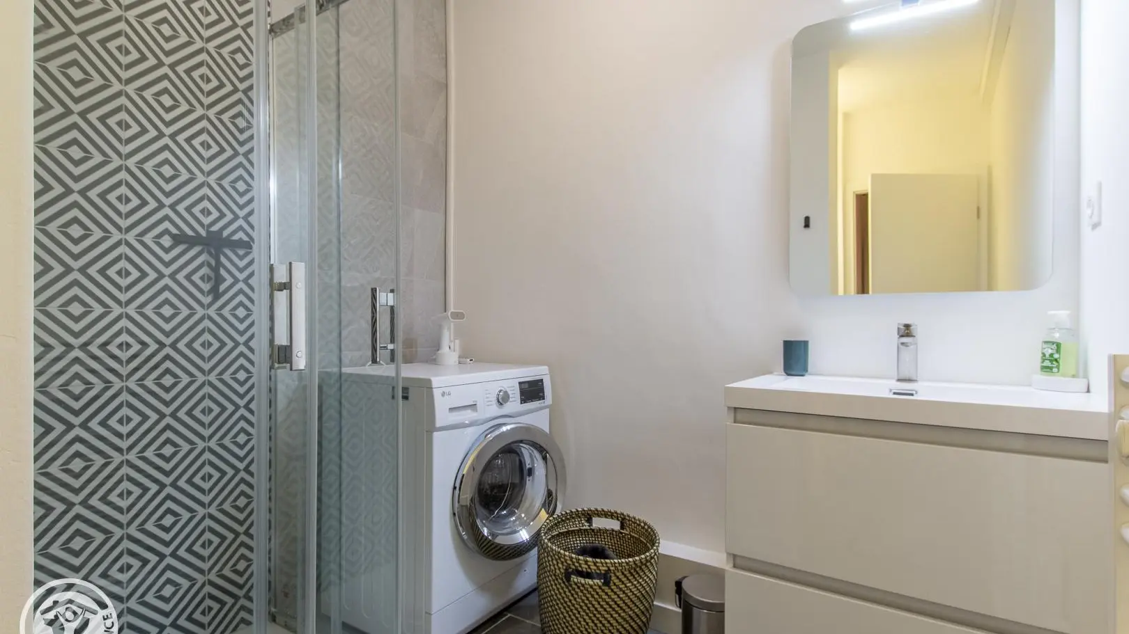 Parking de copropriété avec barrière (placement libre sur les places non attribuées). Local vélos.