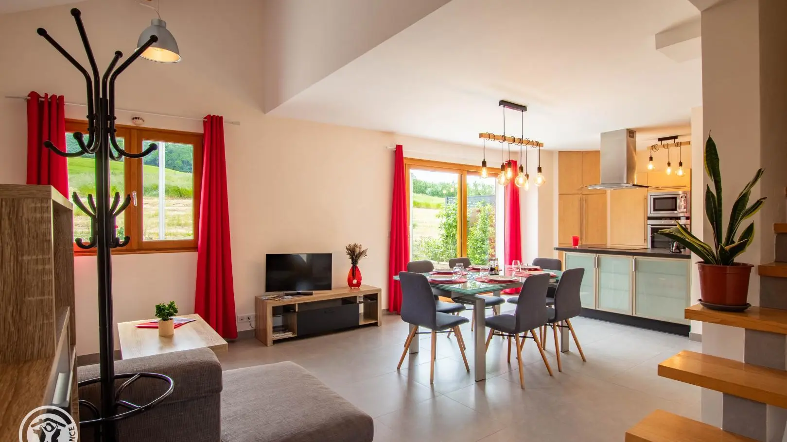 Dans le hameau de Veyssières, gîte de 77 m² situé en mitoyenneté avec le logement des propriétaires.