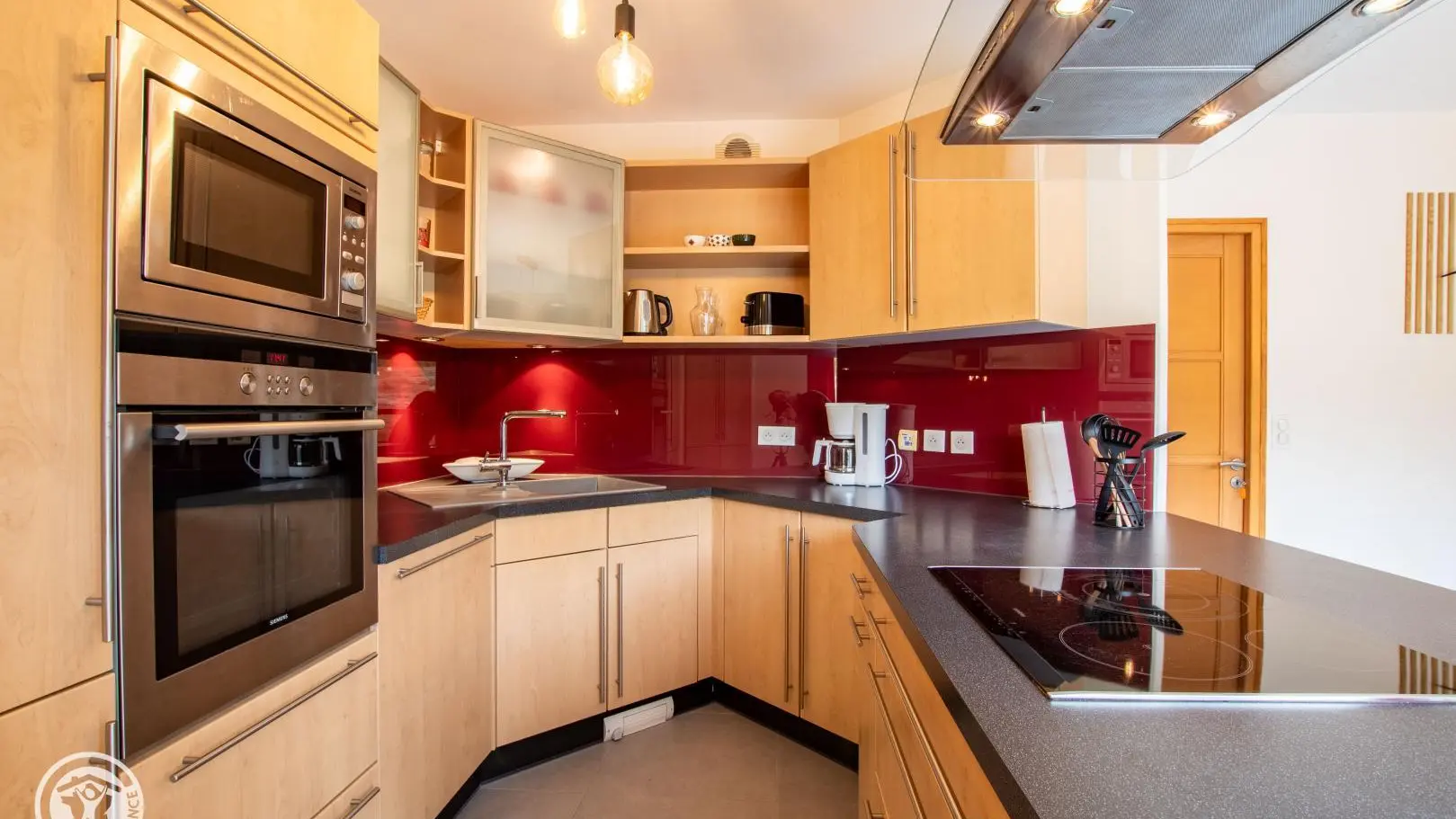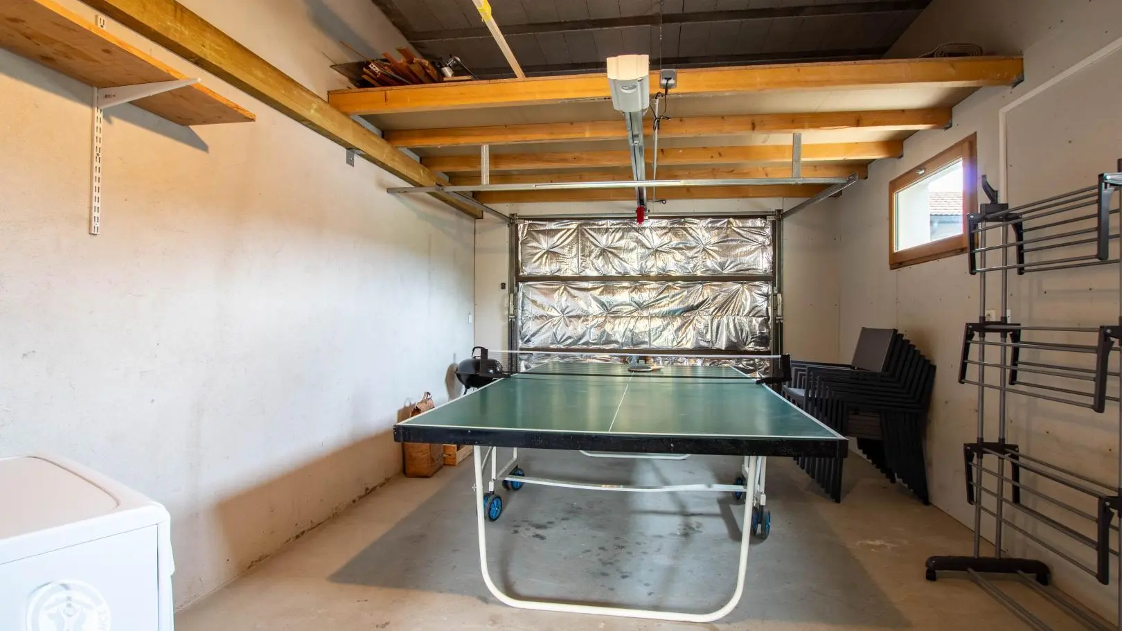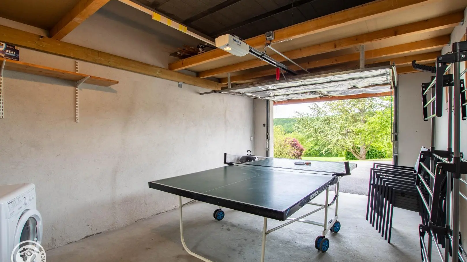 Garage privatif et parking extérieur devant le gîte. Recharge de véhicule électrique avec wall-box possible en supplément. Table de ping-pong.