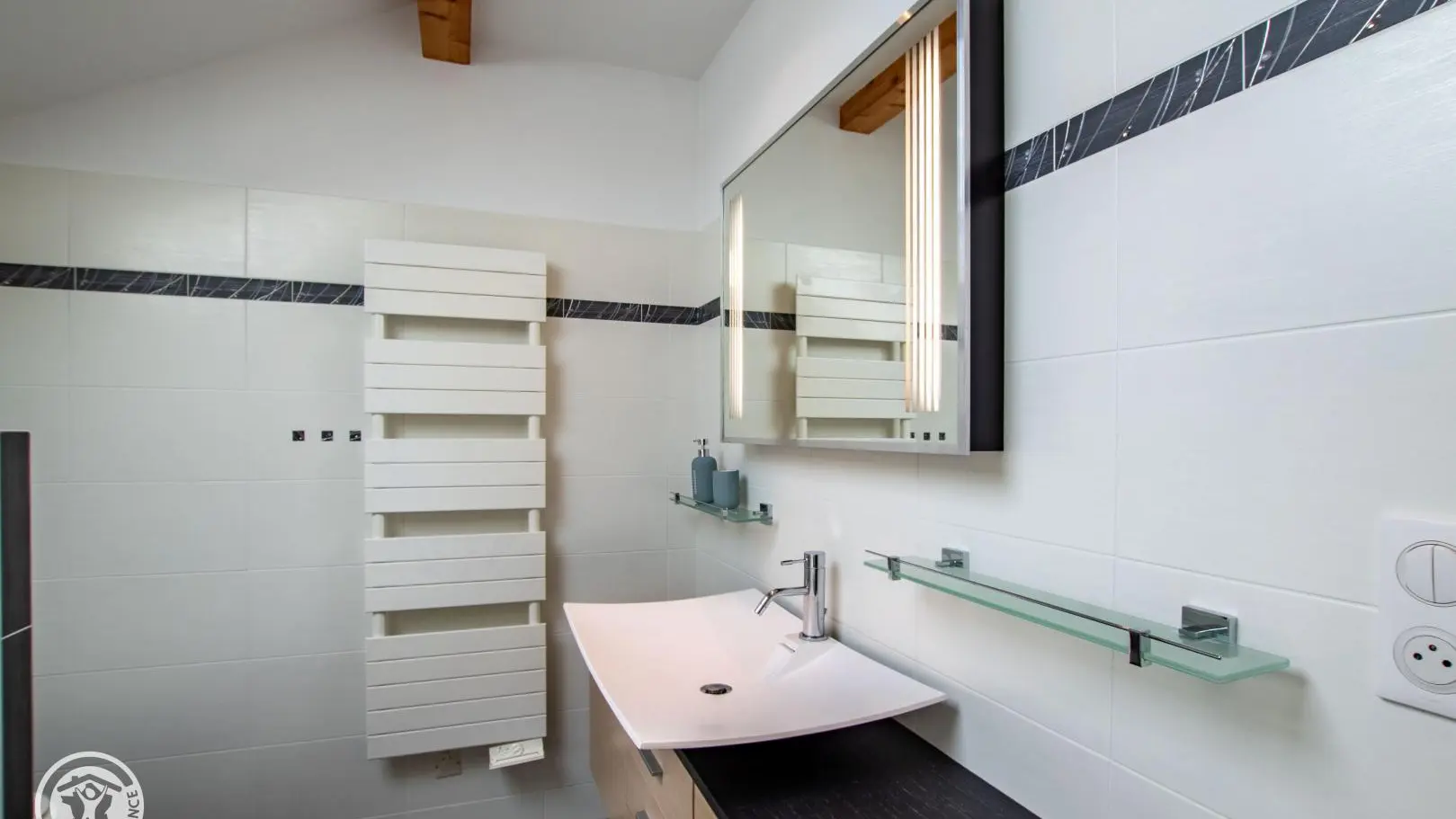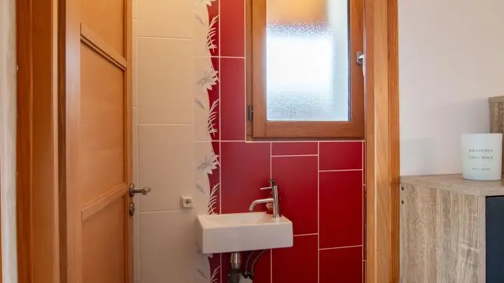 WC indépendant. Accès au garage depuis le séjour (quelques marches), intégrant le lave-linge.