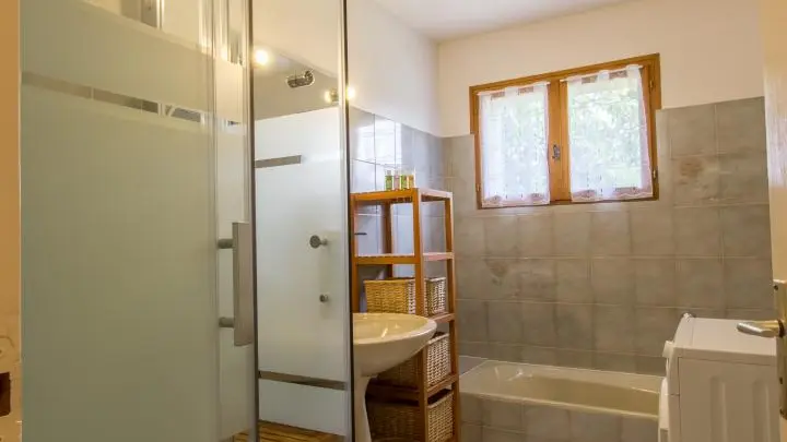 Entrée indépendante de plain pied depuis la terrasse. Au rez-de-chaussée: cuisine intégrée séparée, séjour (Tv, canapé, espace repas), salle de bains avec douche + baignoire, wc indépendant.