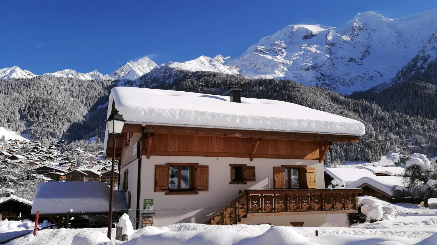 Face aux Dômes de Miage et à seulement 900m de la télécabine de Montjoie, ce gîte de 40m2 entièrement rénové est aménagé de plain pied en rez-de-jardin d'une maison de type chalet comprenant le logement des propriétaires ainsi qu'un autre gîte au 2ème. Cuisine intégrée, séjour (TV, DVD, canapé BZ 2 pers.) avec coin repas, chambre (1 lit 140X190cm), salle d'eau (douche à l'italienne, s-serviette), WC. Terrasse bois avec vue montagnes, transats, salon de jardin. Jardin clos commun, cour, déneigement assuré. Chauffage Fioul. En saison: navette gratuite à 30m. Ski à 1km, base loisirs 1,5km, thermes de Saint-Gervais 9km, Chamonix 33km. Nombreuses randos à proximité. (GR du TMB).