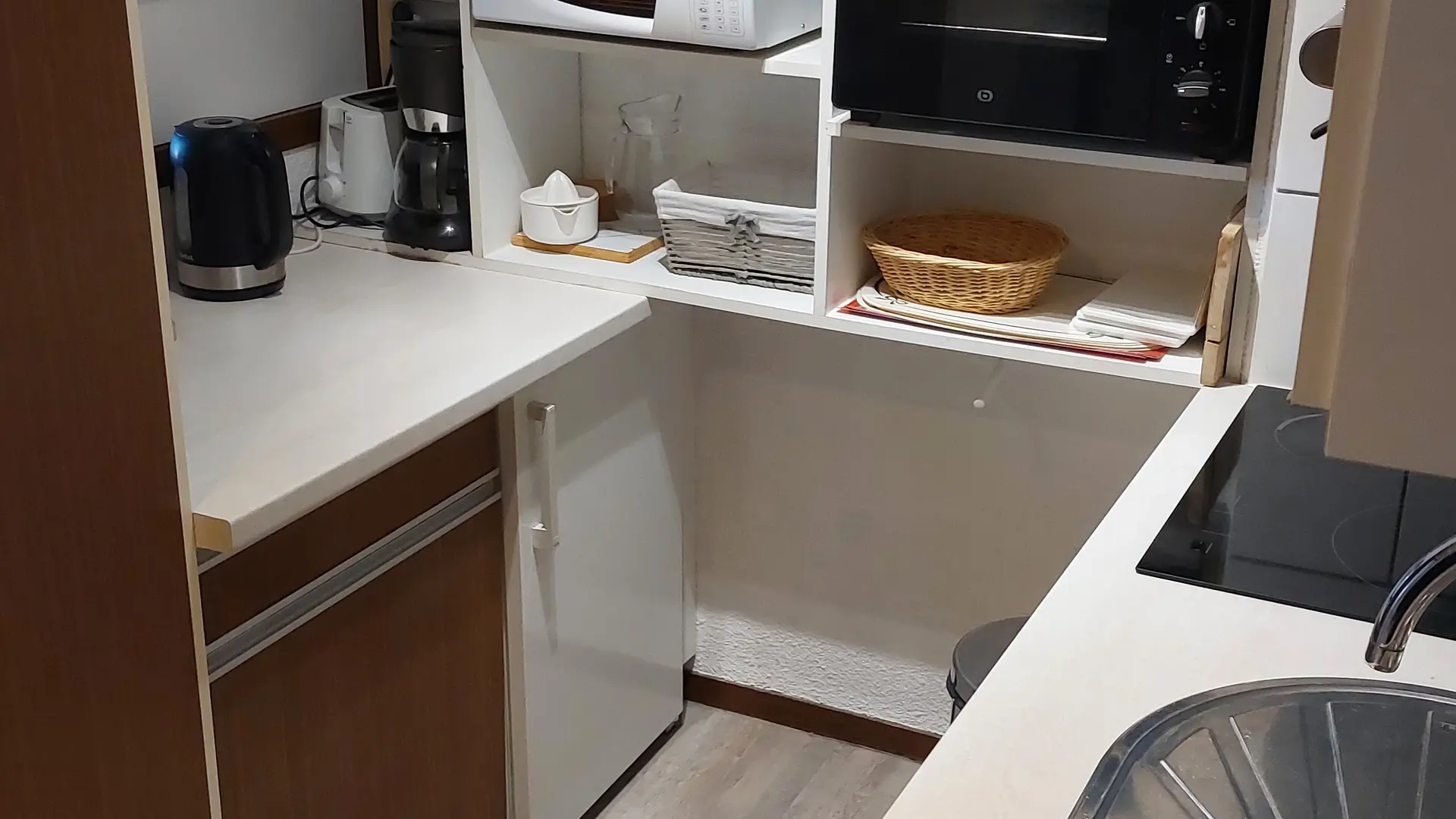 Pièce indépendante. 4 brûleurs électriques & hotte Four et four micro-ondes. Réfrigérateur de 80 l. avec partie conservateur.