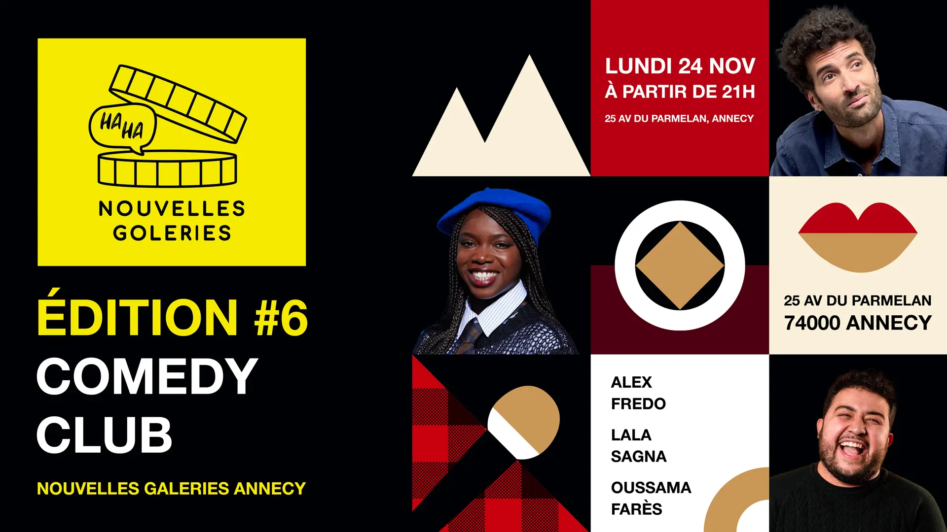 Cette fois, les spectateurs auront le plaisir de retrouver Alex Fredo, dont l'humour incisif et l'art de l'improvisation transforment chaque passage en expérience unique. Et vous n'êtes pas à l'abri qu'il sorte sa guitare ! Lala Sagna nous livrera avec ironie et légèreté ses tribulations de prof le jour et stand-uppeuse la nuit. Enfin, nous aurons le plaisir d'accueillir sur scène Oussama Fares, figure incontournable de l'humour canadien, qui nous partagera un extrait de son spectacle qu'il aura joué le weekend précédent au Montreux Comedy Festival. Trois univers, trois énergies, et une soirée givrée qui promet de lancer la magie des fêtes dans un grand éclat de rire !