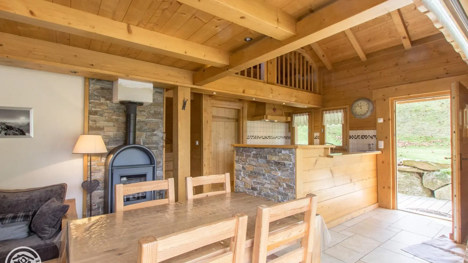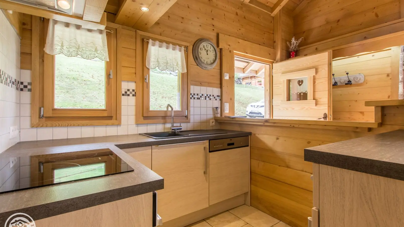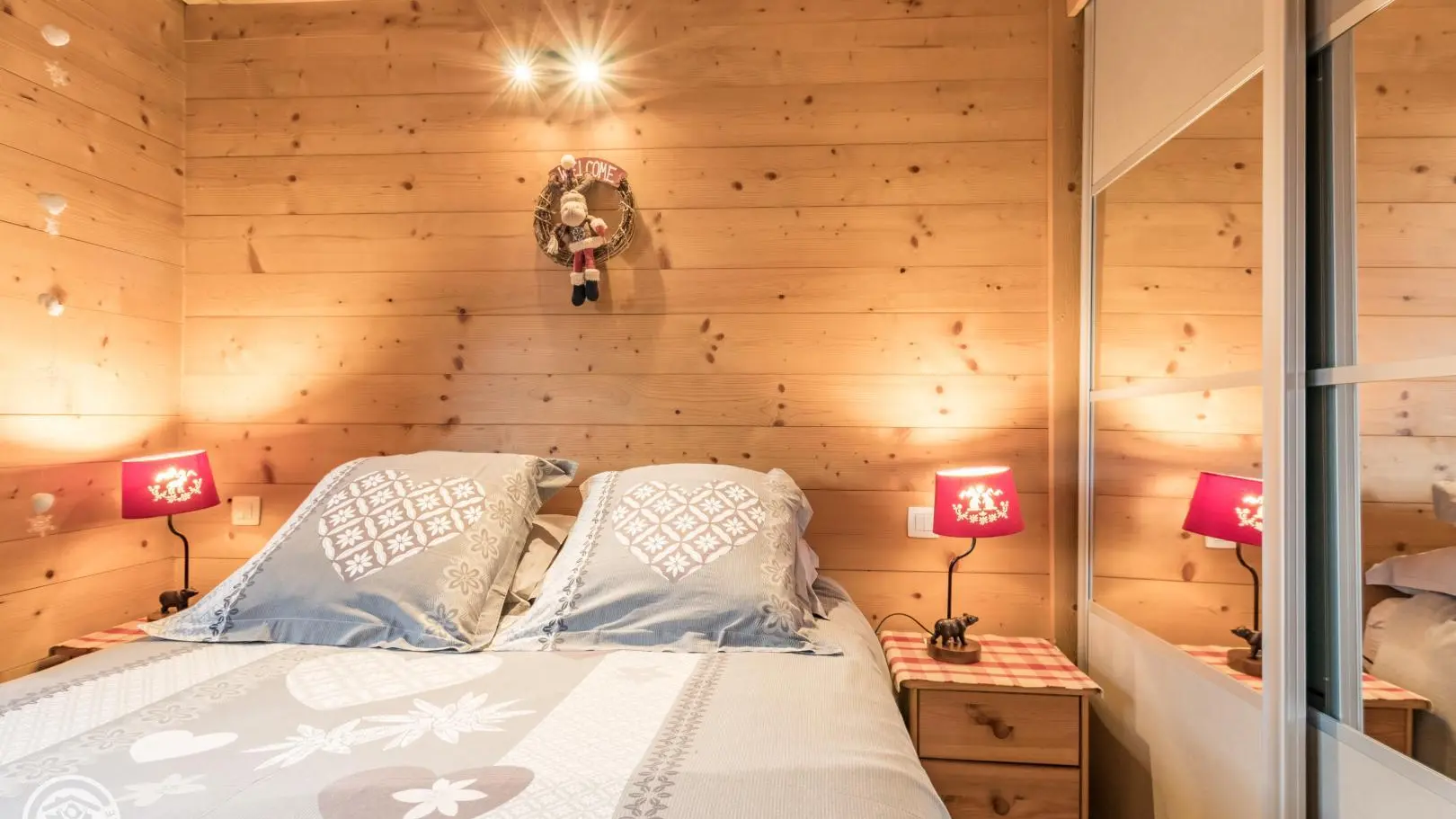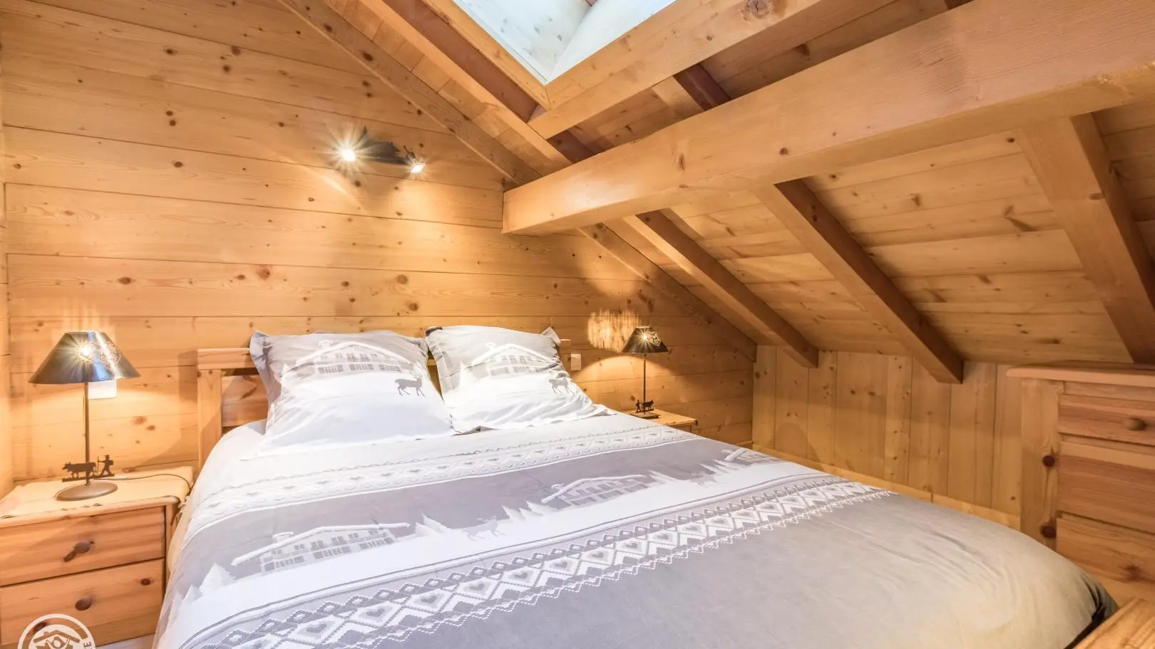 Chalet indépendant de 48m2 (+mansardes) aménagé sur 2 niveaux. Ambiance et décoration chaleureuse typiquement savoyarde. Au rez-de-chaussée: cuisine intégrée ouverte sur séjour (canapé, Tv, poêle à bois), chambre 1 (1 lit 140x190cm), salle d'eau (douche) avec wc.