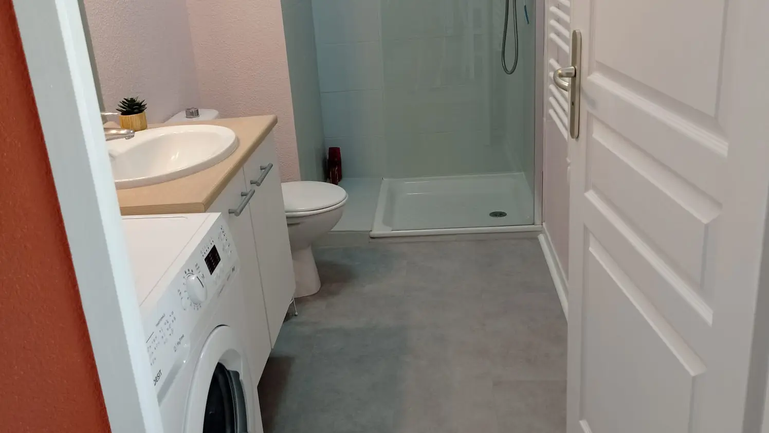 Il dispose, entre autre, d'une chambre avec un lit 160 cm, d'une douche à l'italienne et d'un balcon. Très bien équipé.
