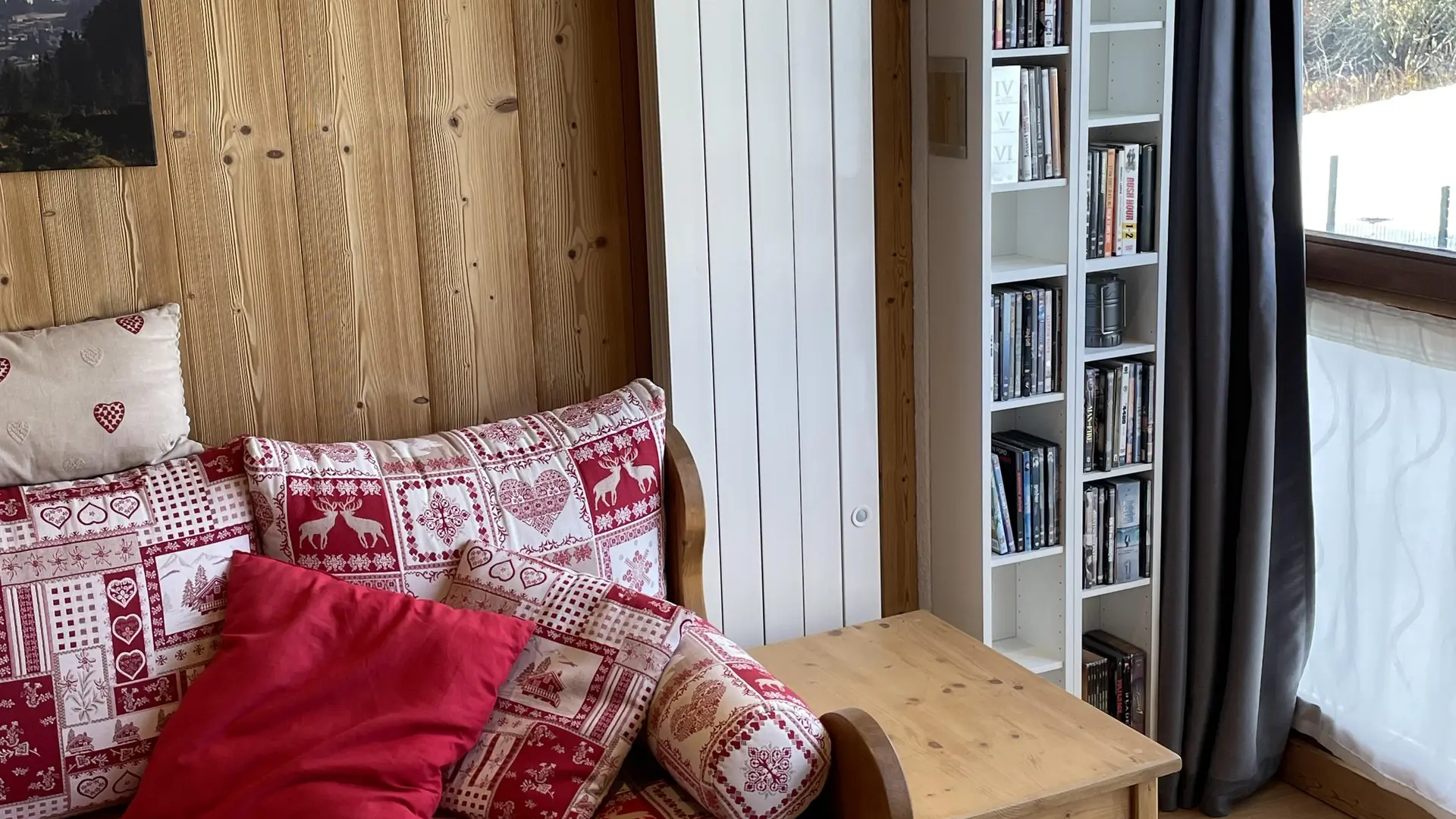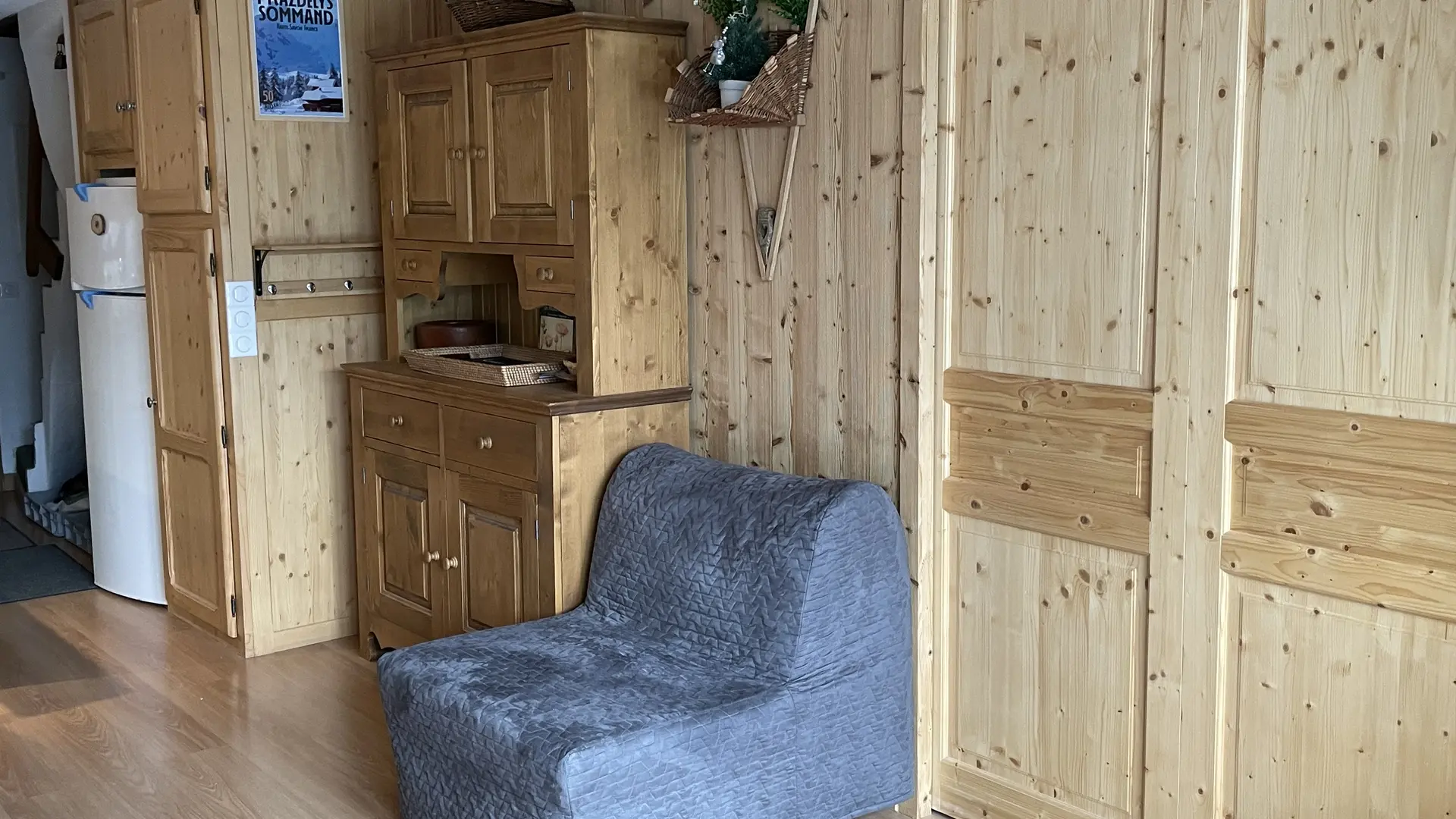 - Salon : 1 canapé-lit gigogne 160 x 190 (2 couchages) et 1 chauffeuse 80 x 190 (1 couchage d'appoint)