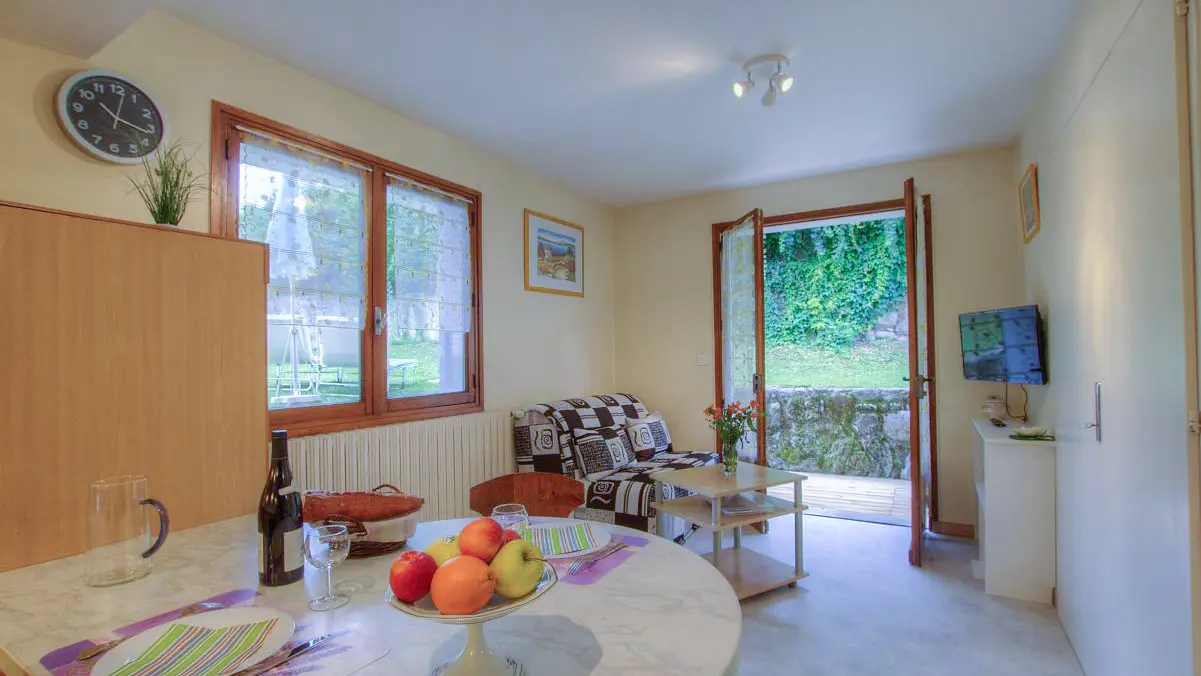A proximité immédiate du lac d'Annecy, des plages, de la piste cyclable et des commerces : gîte d'accès indépendant (plain pied), aménagé en rez-de-jardin d'une maison sise dans un secteur calme des rives du lac.