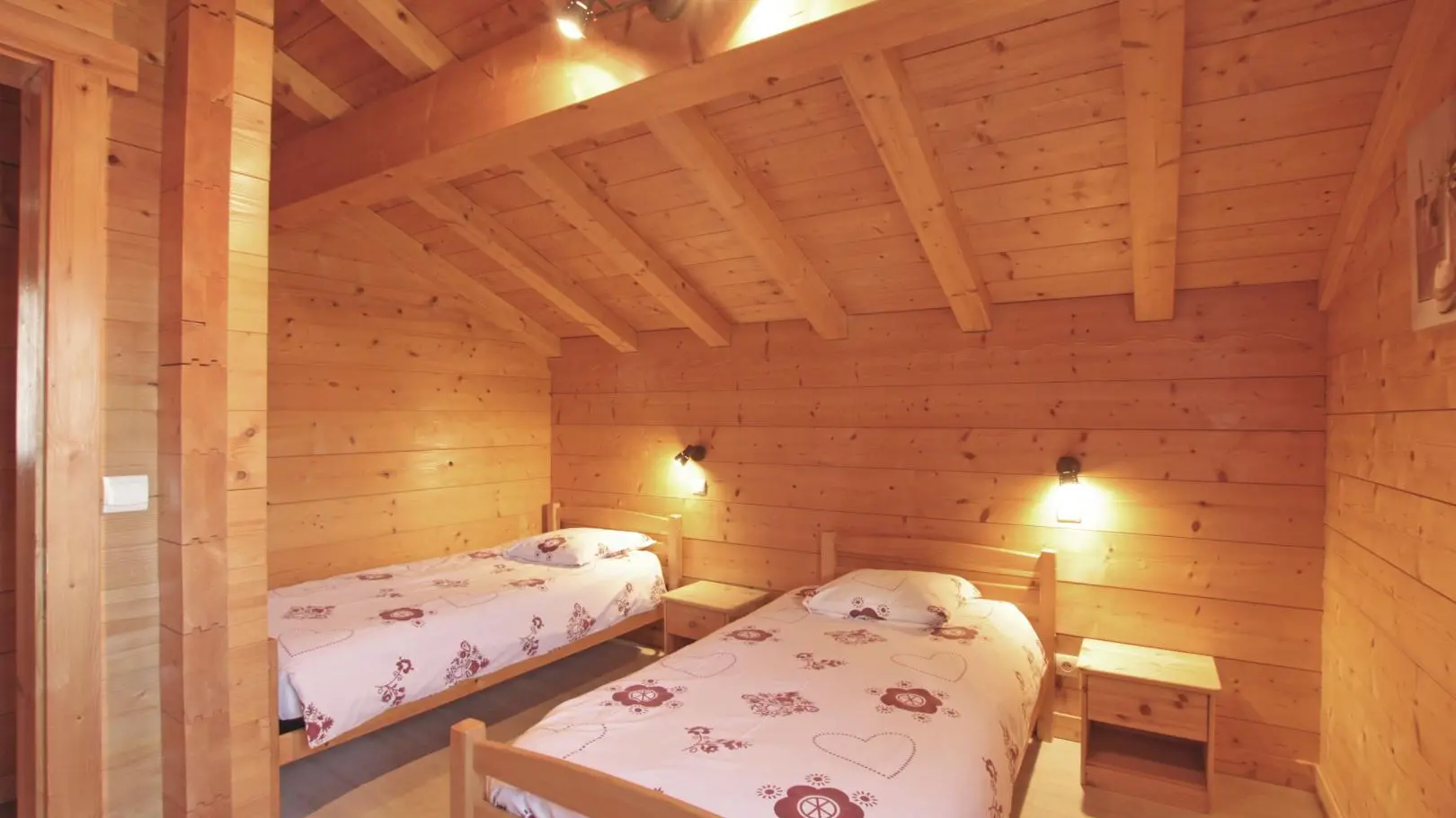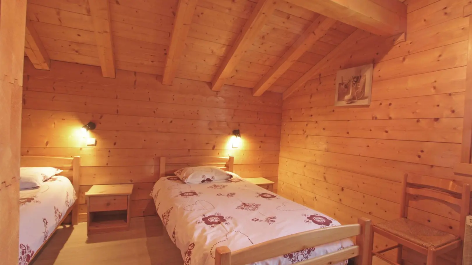 Au 1er étage : chambre 1 (2 lits 90cm), chambre 2 (1 lit 140 cm), wc indépendant. Terrasse, petit terrain, abri voitures. Stations de ski La Clusaz et Le Grand-Bornand à 4 km.