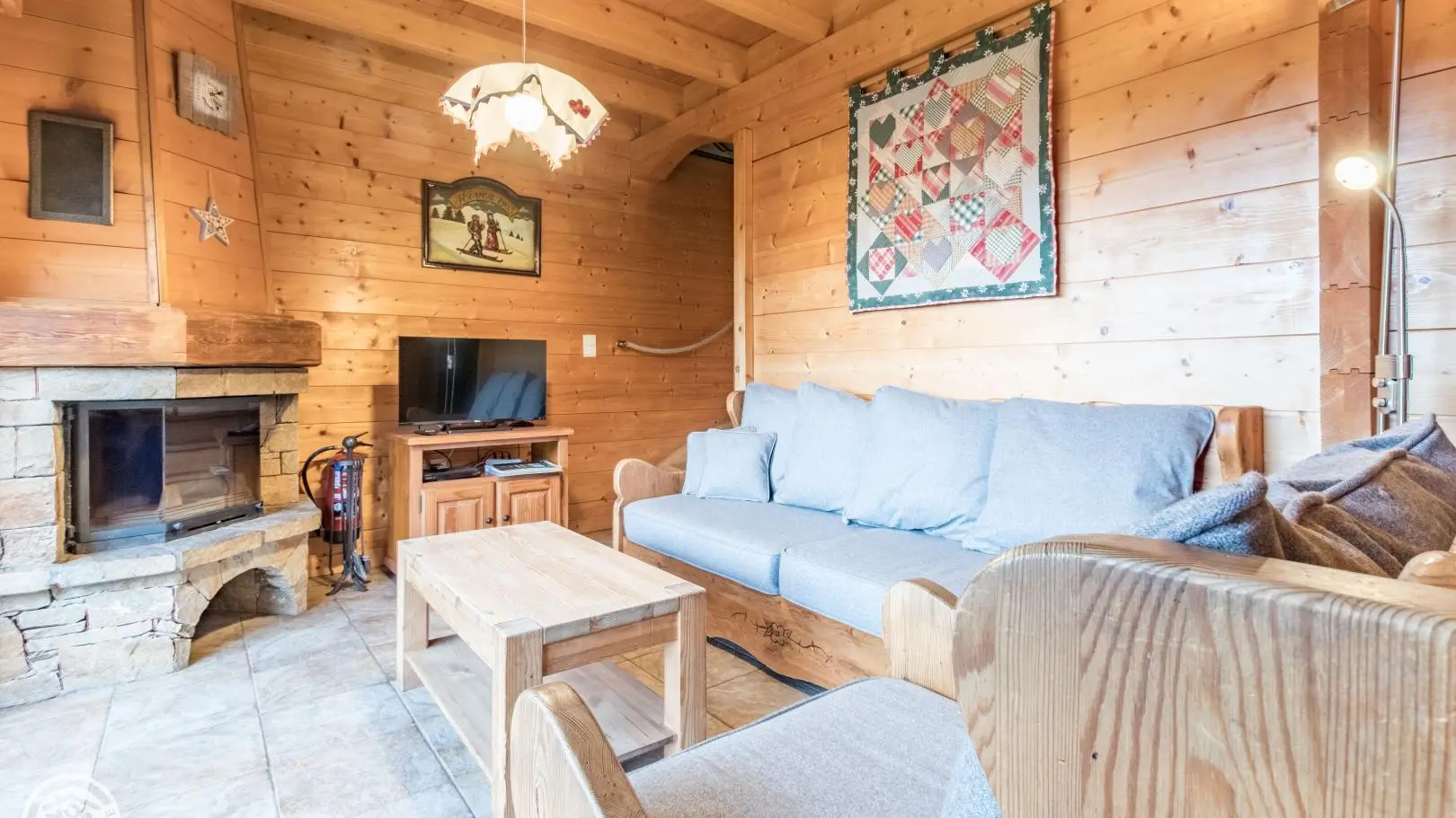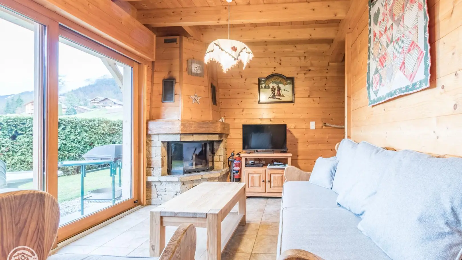 Au coeur du massif des Aravis, belle vue panoramique, chalet indépendant avec cheminée. Au rez-de-jardin : cuisine équipée, salon, salle d'eau (douche à l'italienne), wc indépendant.