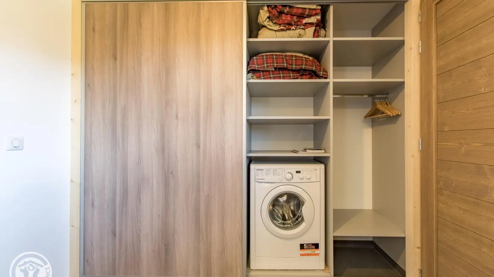- Grand placard à l'entrée avec lave-linge, rangements.