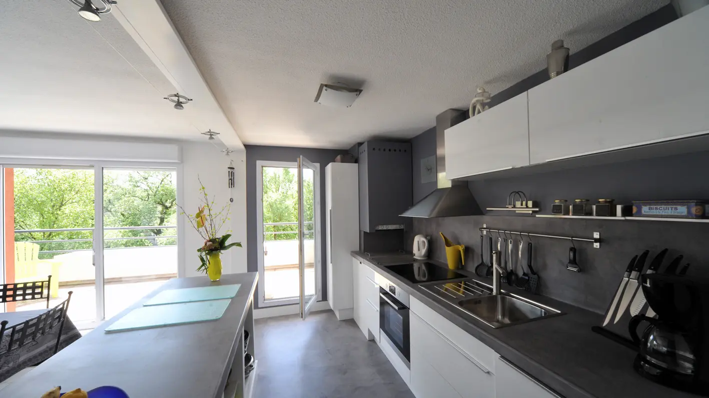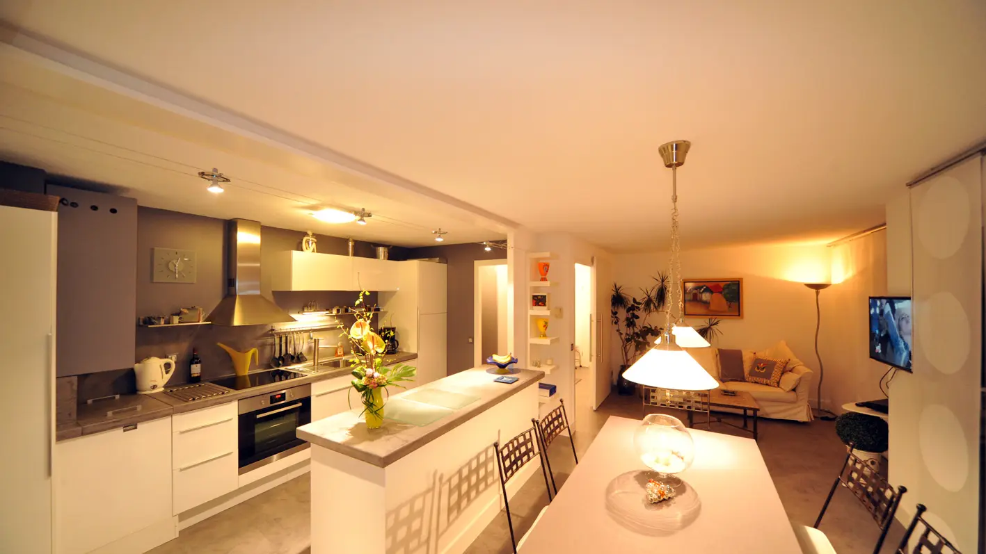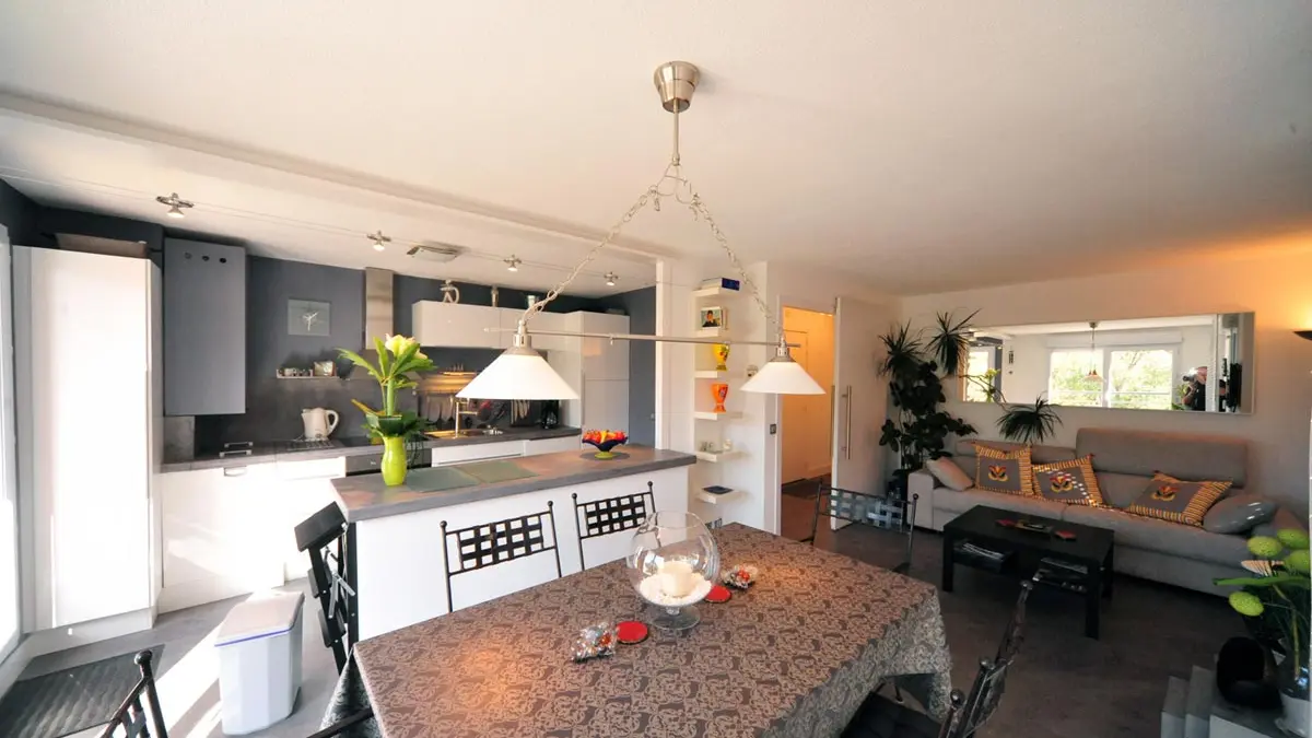 Au dernier étage d’une jolie propriété, il offre 90 m² répartis en une belle salle de séjour avec cuisine américaine toute équipée, chambre, salle de bain, toilette indépendante ainsi qu’une vaste terrasse de 40m2 surplombant le Thiou. Cet appartement avec ascenseur et parking privé dispose de tout le confort ménager d’un 4 étoiles (Smart TV, Blue Ray, chaine Hifi, …).