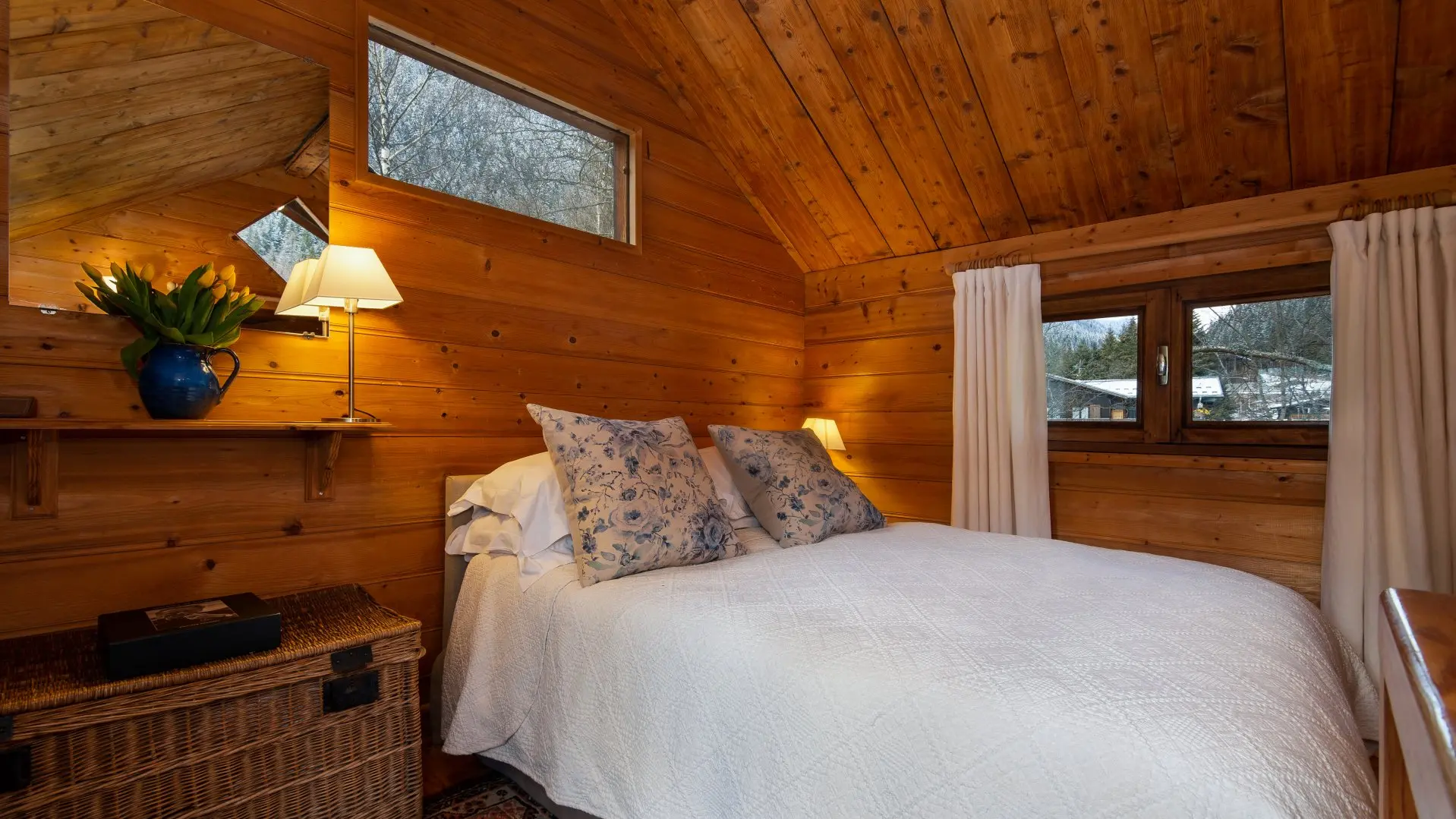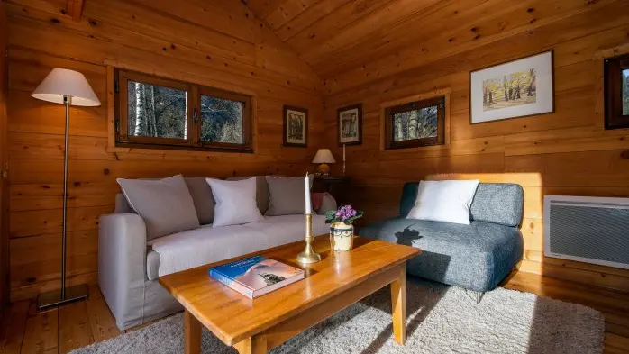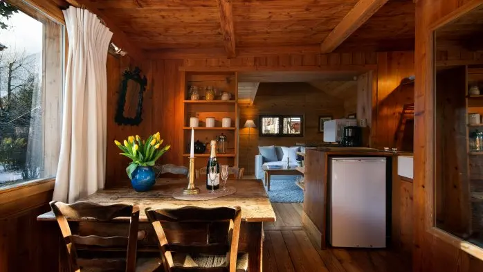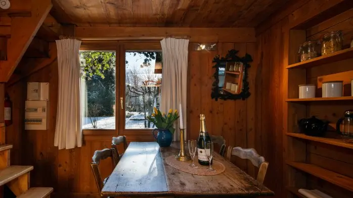 Lumineux et très bien décoré, le mazot est entièrement construit en bois.