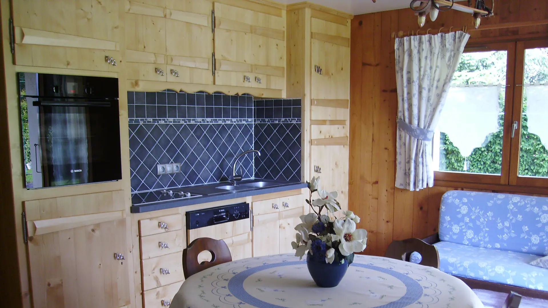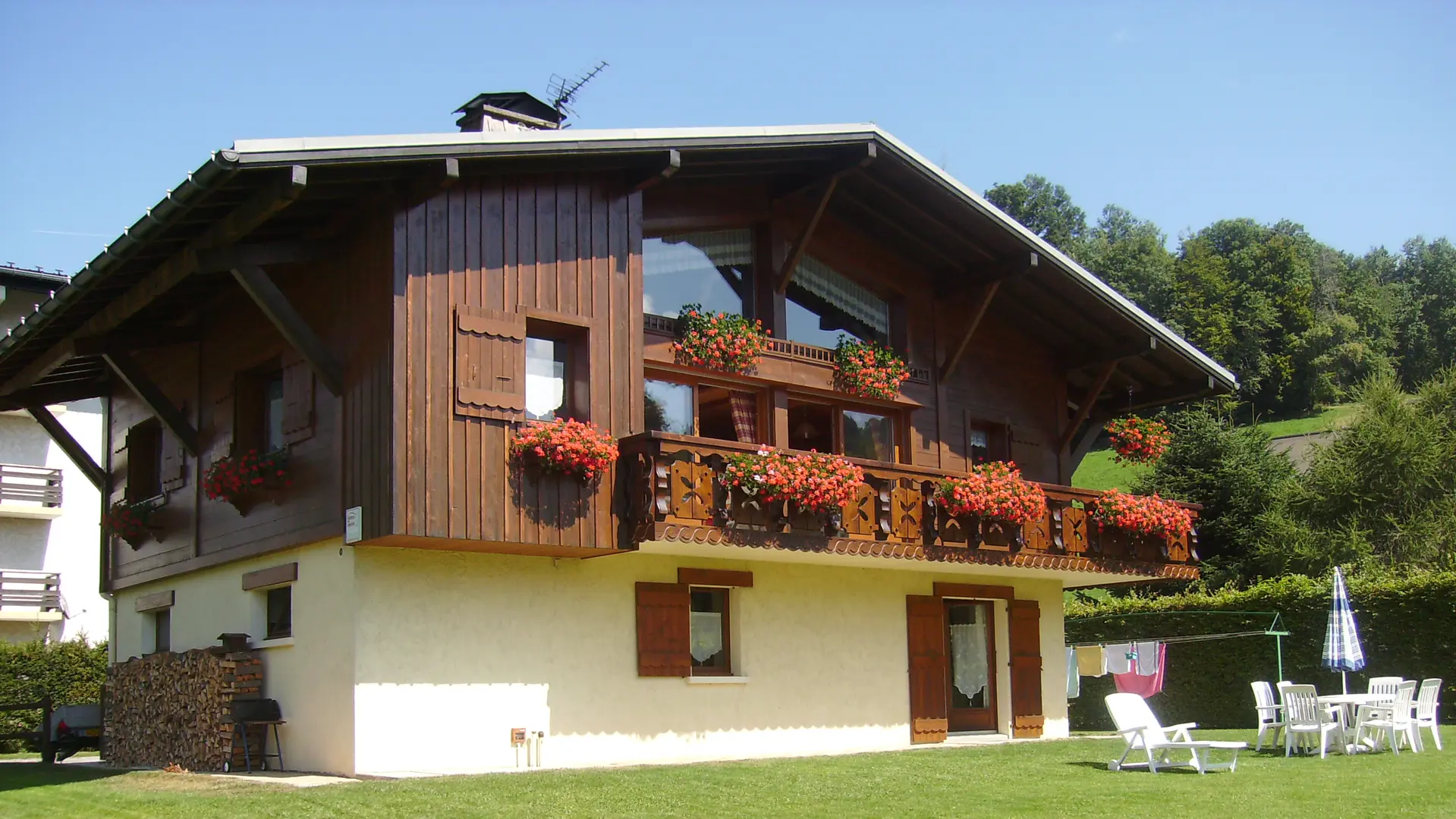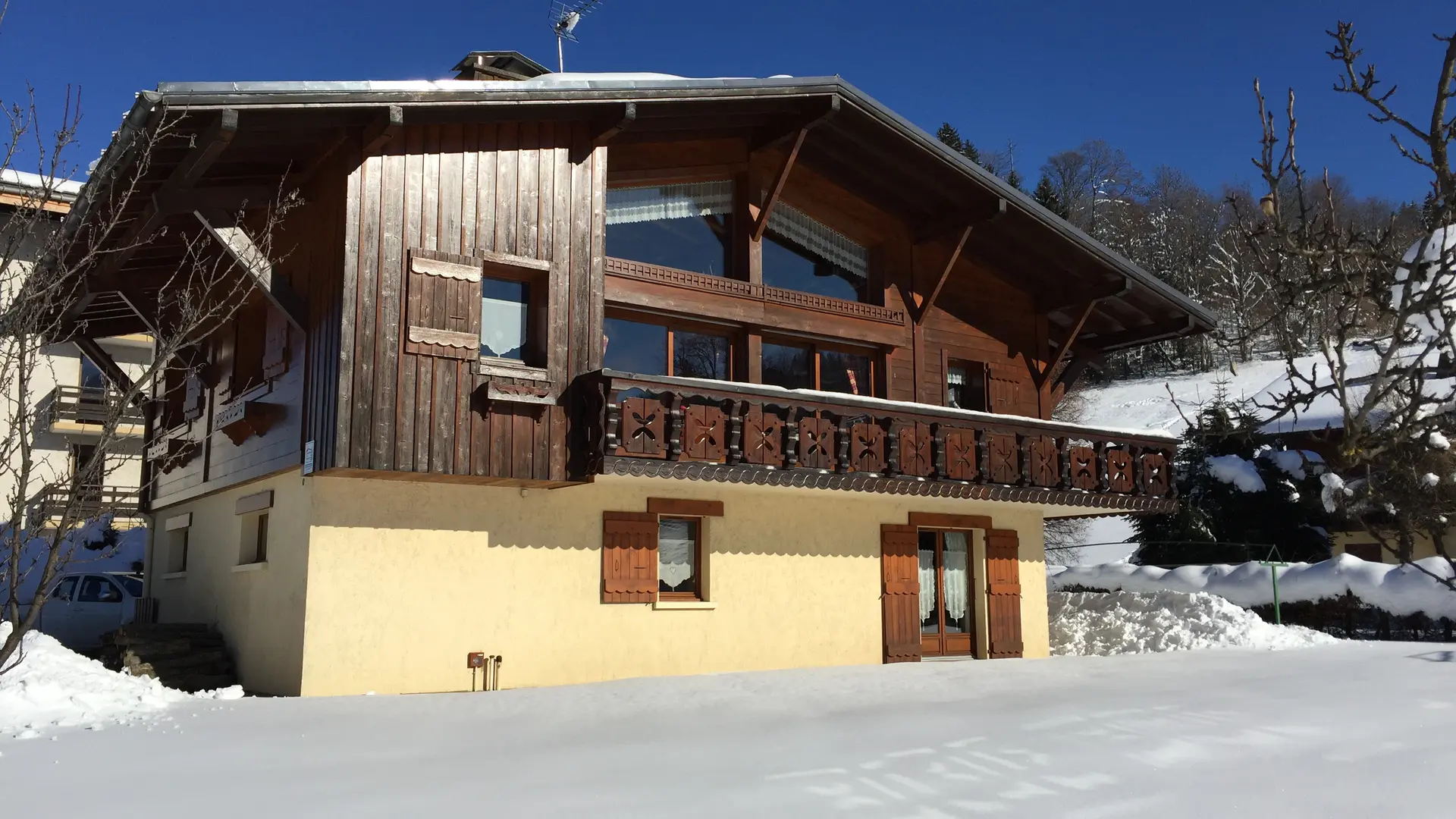 L'intérieur est de caractère montagne, avec beaucoup de bois et meublé dans le style du pays. Le séjour avec son coin-cuisine équipé de façon moderne où rien ne manque : micro-onde, cafetière électrique, grille-pain, batteur électrique, service à raclette, à fondue, bénéficie d'un ensoleillement maximum (une fenêtre à l'est et une porte-fenêtre au sud coté pelouse). Télévision et lecteur DVD. WIFI. Bouquins et guides pratiques sur la station sont à votre disposition.