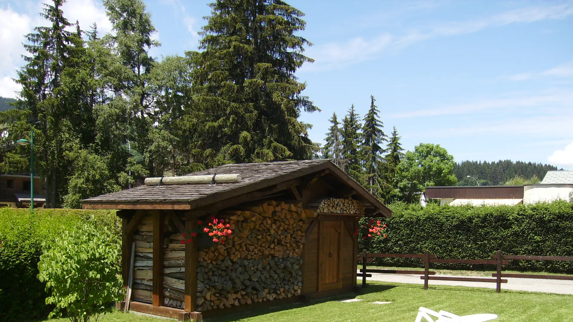 Appartement de plain pied avec accès direct sur un parc clos de 1000 m. Les enfants pourront y jouer, faire de la balançoire, de la luge ou des bonhommes de neige pendant que vous vous détendez : le salon de jardin n'est là que pour vous !
