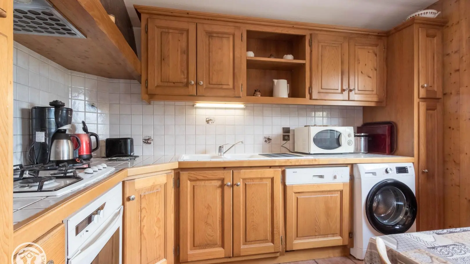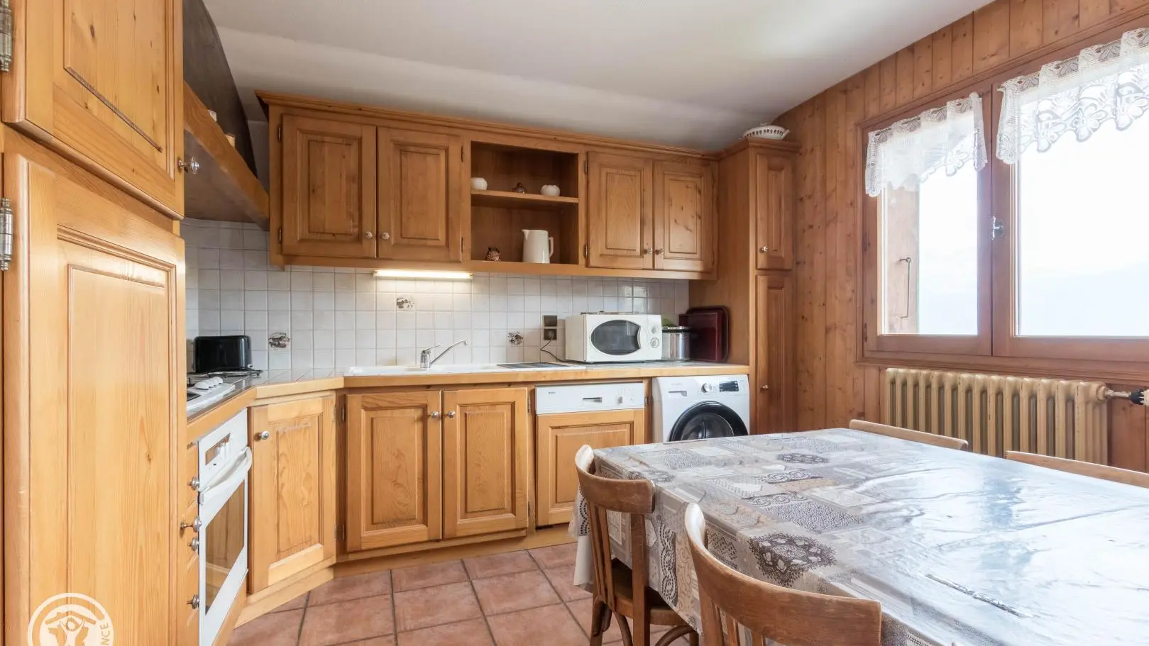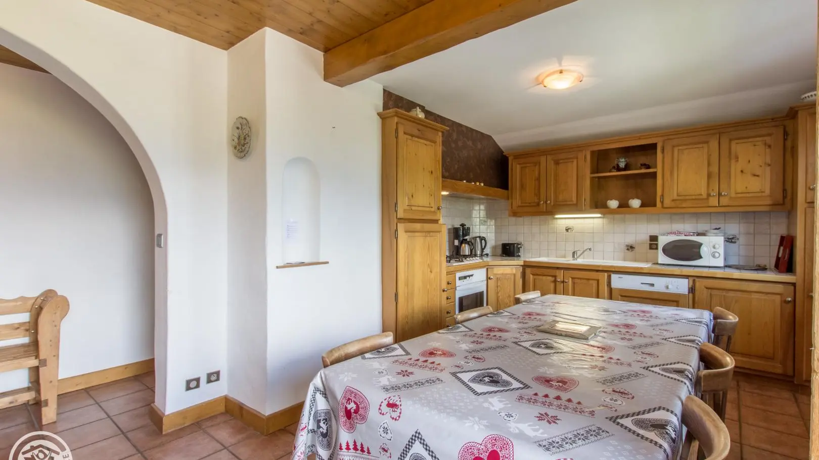 Entrée commune avec le logement propriétaire depuis le 1er étage. Cuisine intégrée ouverte sur séjour (Tv, banquette), chambre 1 (1 lit 160x200cm), chambre 2 (2 lits 80x190cm jumelables en lit 160cm), chambre 3 (1 lit 140x190cm), salle d'eau (douche), wc indépendant.