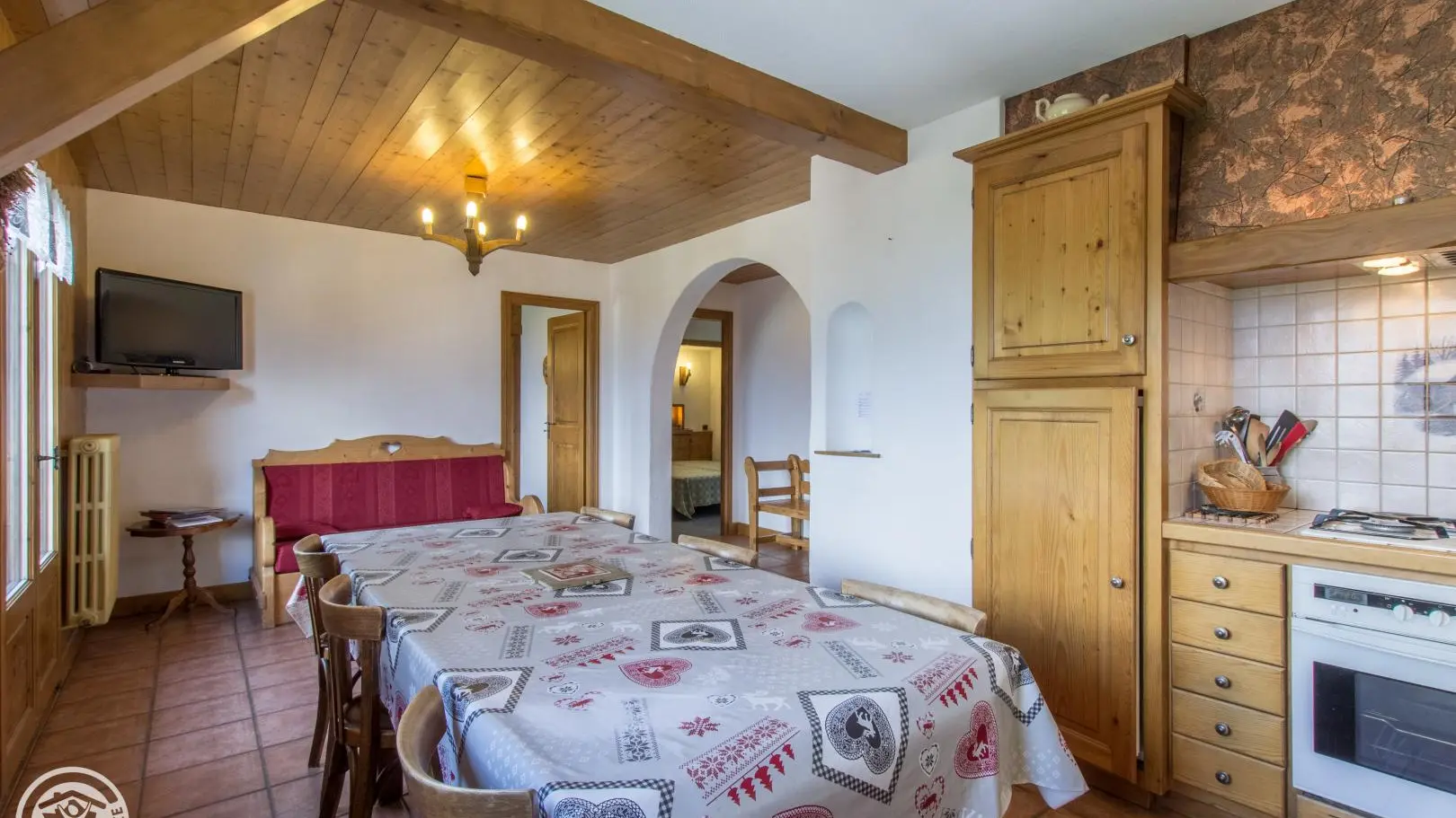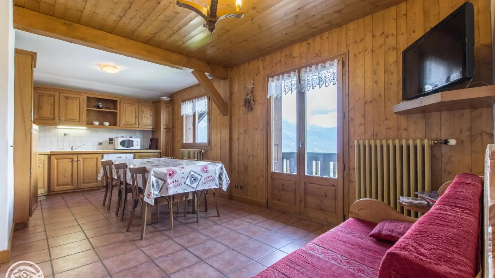Appartement de 62m2 aménagé au 2ème étage d'un chalet comprenant également un autre gîte (au rez-de-chaussée), ainsi qu'un logement propriétaire (au 1er étage).