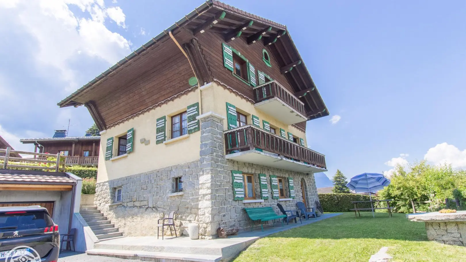 Balcon, jardin privatif situé sur l'arrière de la maison avec espace terrasse - face au Mont-Blanc (table forestière). Possibilité de louer les draps et serviettes de toilette. Grand garage commun avec deux emplacements privatifs. Cour commune.