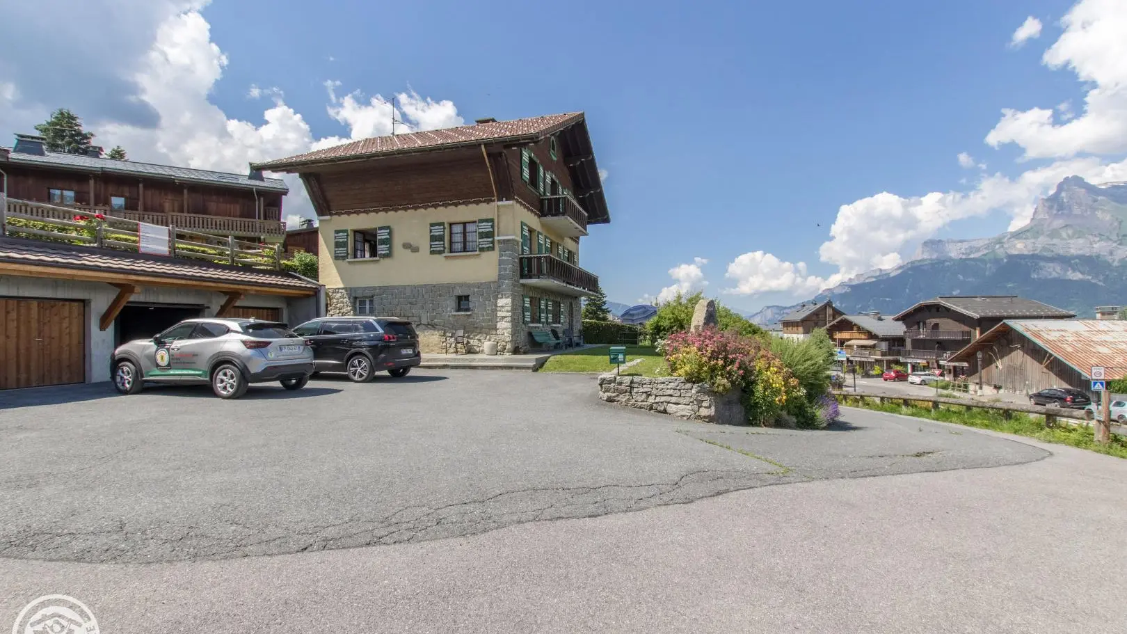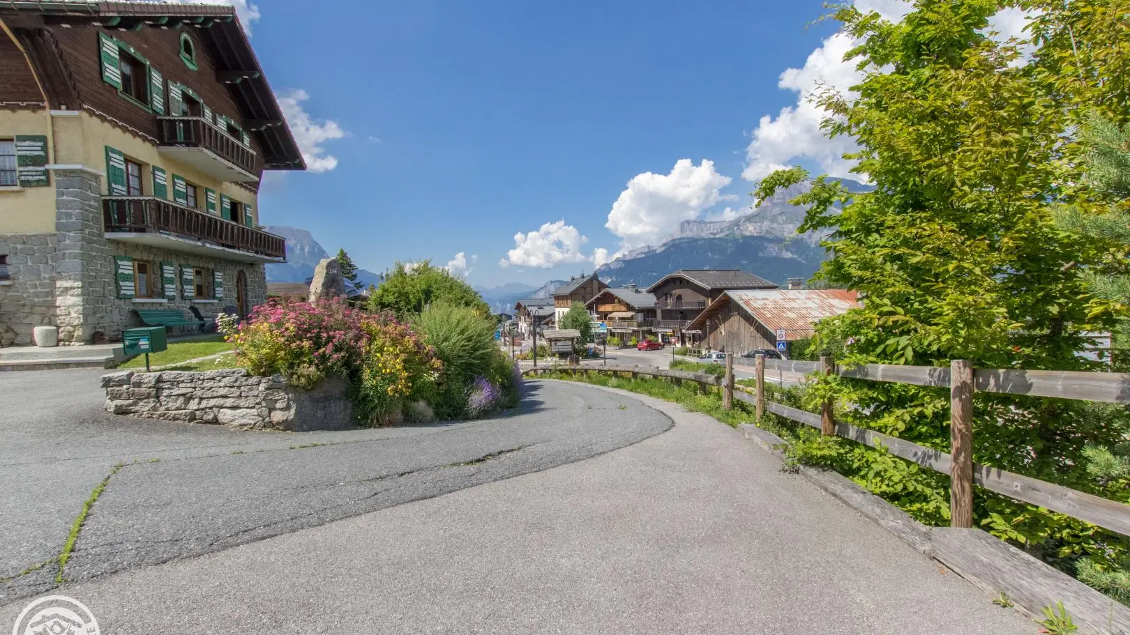 Le chalet est situé au centre village, à proximité de la route départementale menant à Megève.