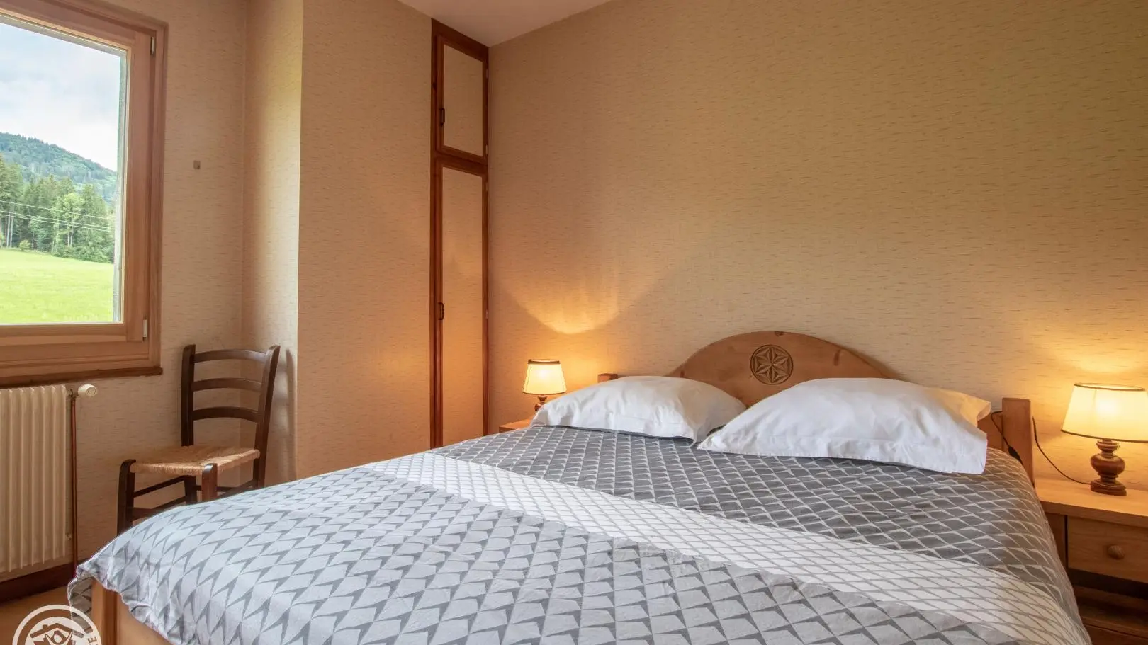 Belle vue sur les montagnes de la Vallée Verte : Gîte de 75 m2 aménagé au 1er étage de la maison des propriétaires. Cuisine ouverte sur espace repas. coin séjour, coin couchage séparé par une cloison mobile (1 lit 140 cm, 1 lit 90 cm), Chambre 1 (1 lit 140 cm). Salle de bains, Wc indépendant. Chauffage central, terrain, salon de jardin. Ski à Habère Poche à 10 km, Accroparc à Saxel à10 km. Thonon et le lac Léman à 28 km. Nombreuses randonnées pédestres sur sentiers balisés dans la Vallée Verte.