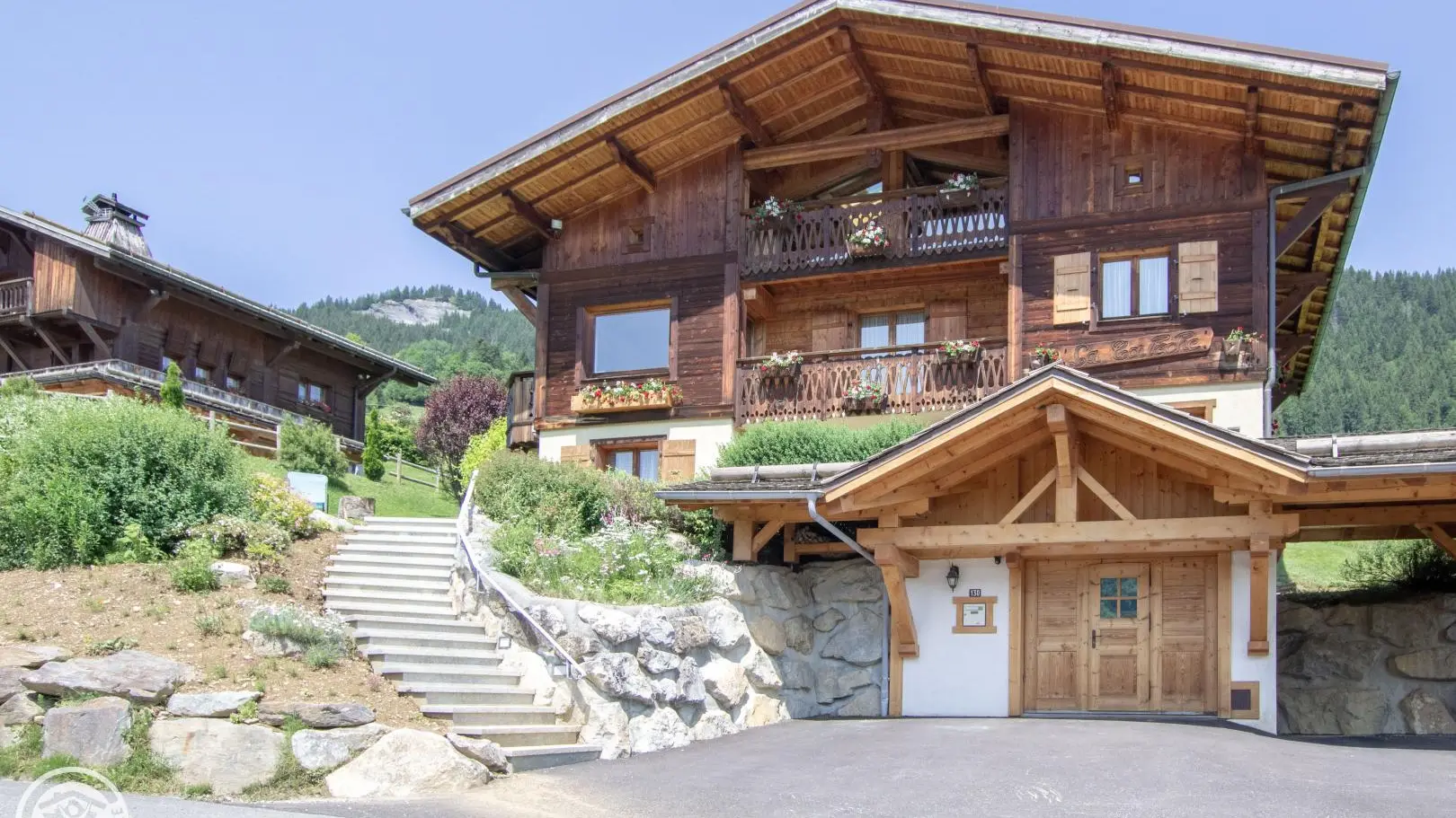 Face au Mont-Blanc, chalet comprenant 2 gîtes et le logement des propriétaires.