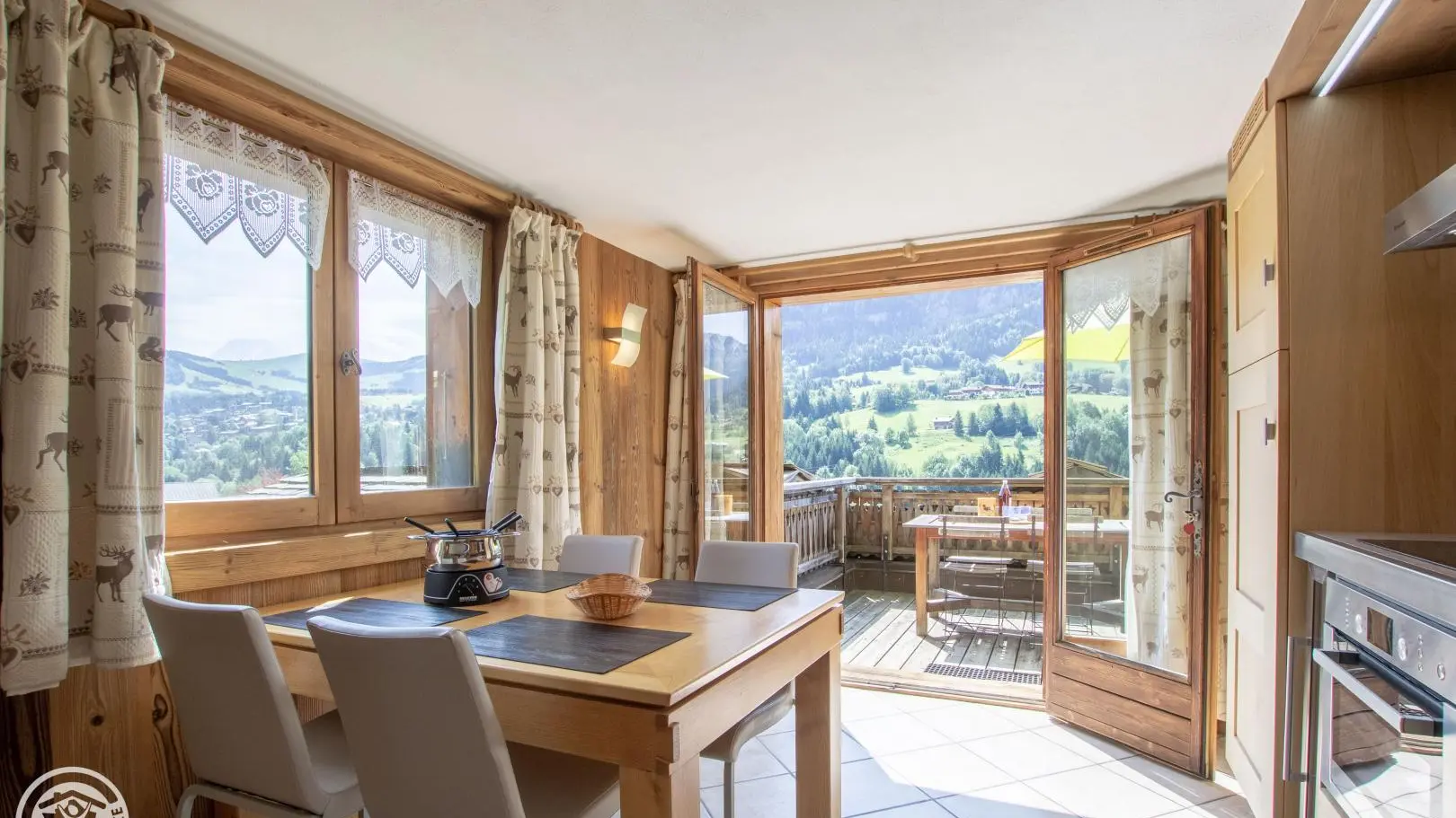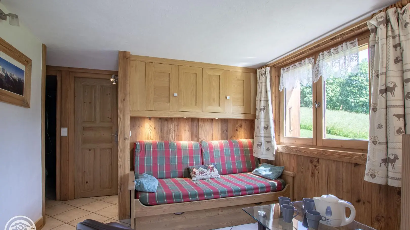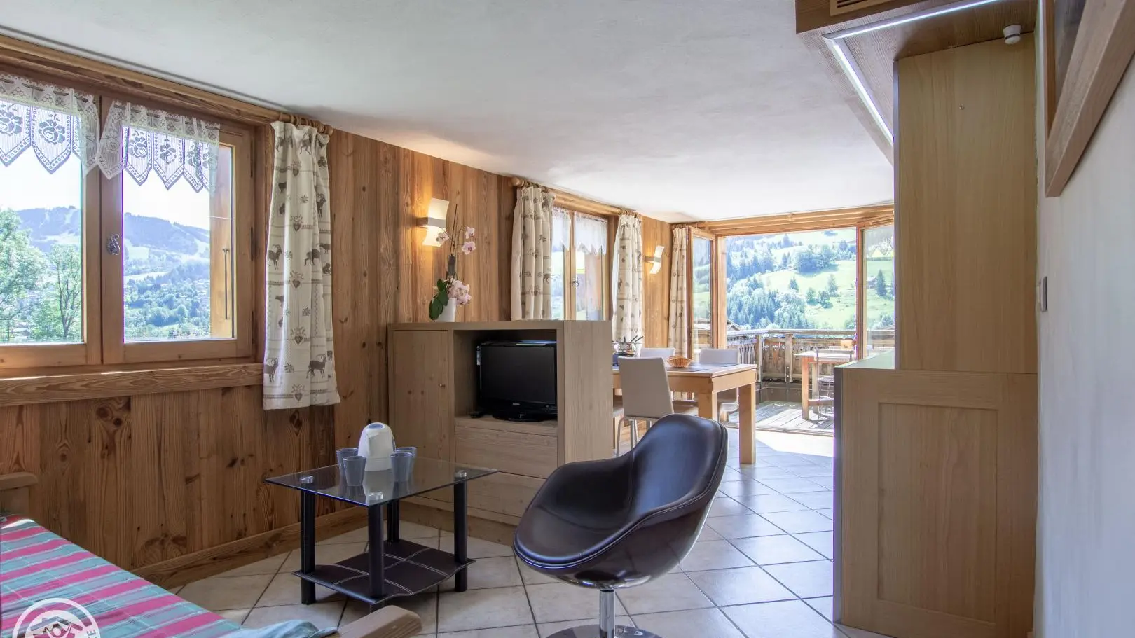 Gîte de 36m2 aménagé en rez-de-jardin avec une terrasse offrant une vue panoramique. Cuisine intégrée ouverte sur séjour (banquette gigogne 2x80 jumelables), chambre (1 lit 140), coin bureau. Salle d'eau, wc indépendant. Chauffage central. Parking couvert. Possibilité location linge de maison. Megève centre à 2.5km. Commerces à 1.5km. Ski bus à 100m du gîte (gratuit), en hiver pour le centre du village. Espace loisirs (sports balnéo, jeux, médiathèque, patinoire ....) à 2.5 km. Gîte non fumeur.