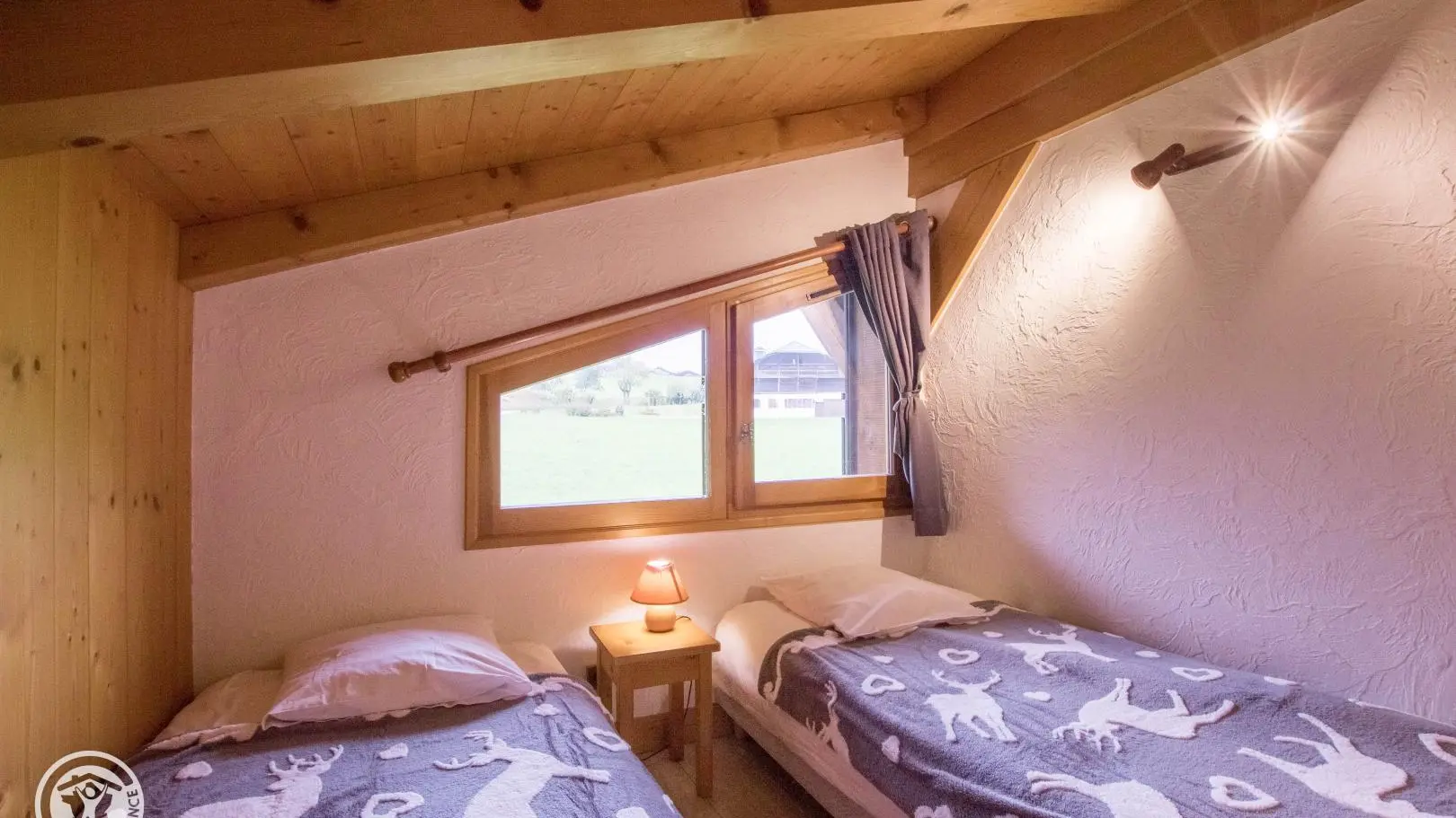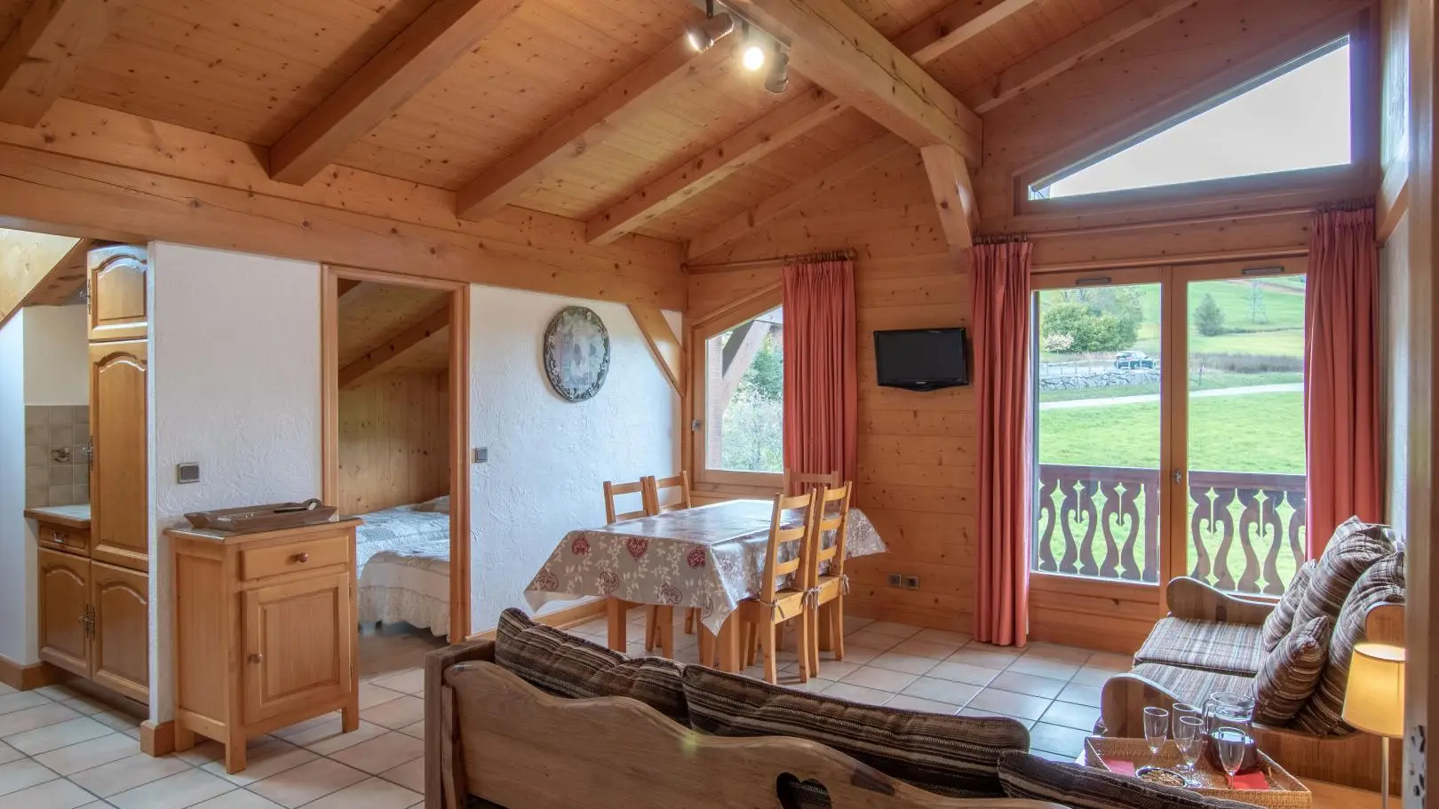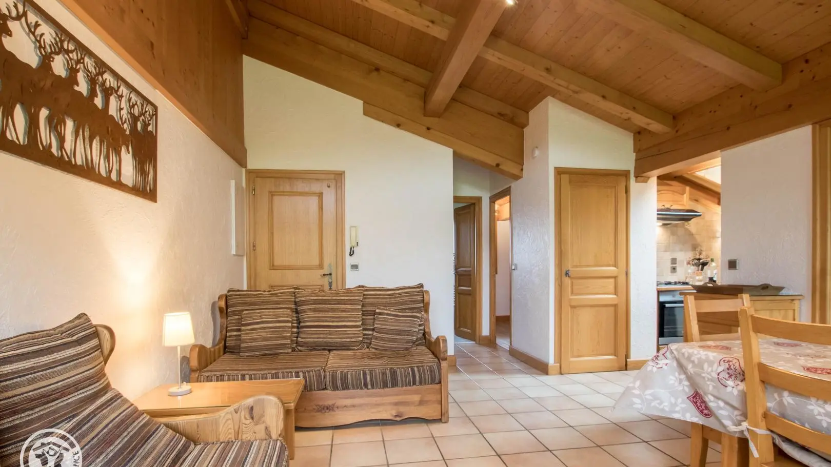 Gîte de 51m2 (dont 4m2 mansardés) aménagé au 2ème étage d'un chalet comprenant le logement des propriétaires et 2 autres gîtes. Cuisine intégrée ouverte sur séjour, Chambre 1 (1 lit 2 pers 160 x 200 cm, et possibilité d'1 lit 80cm d'appoint pour un enfant < 10 ans), Chambre 2 (2 lits 90), Salle de bains, WC indépendant. Buanderie commune au rez-de-chaussée (lave-linge). Chauffage central, balcon, terrain commun, local à ski, salon de jardin, barbecue, possibilité d'une place de garage (en option 30€/s). Jeux enfants. Parking privé. Possibilité de location de draps/et linge de toilette. Télécabine de la Princesse à 300m, Palais des sports Megève à 3Km (piscine, patinoire, remise en forme, tennis,etc...), VTT, promenades en traineau. Gîte en retrait de la route menant à Saint-Gervais. Circuits et parcours raquettes à 1.5km. Plan d'eau biotope à 1.5km. Chamonix à 30km.