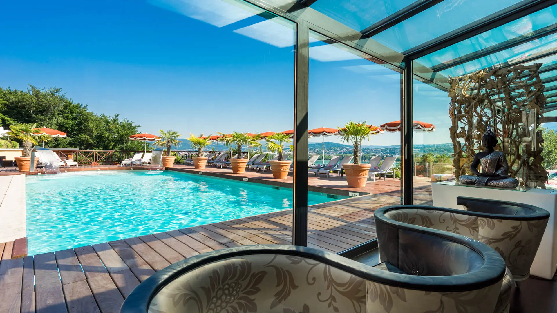 Découvrez Mont Spa Les Trésoms, un véritable havre de paix niché entre lac et montagnes, au cœur de l'hôtel Les Trésoms. Nous vous offrons des voyages sur mesure et des protocoles de soins exigeants pour une expérience unique de bien-être.