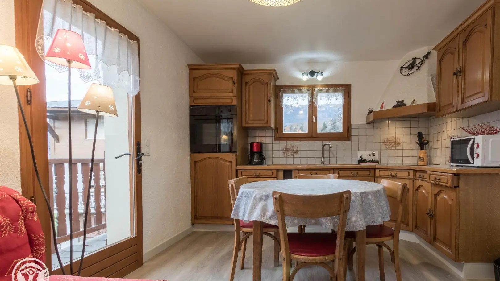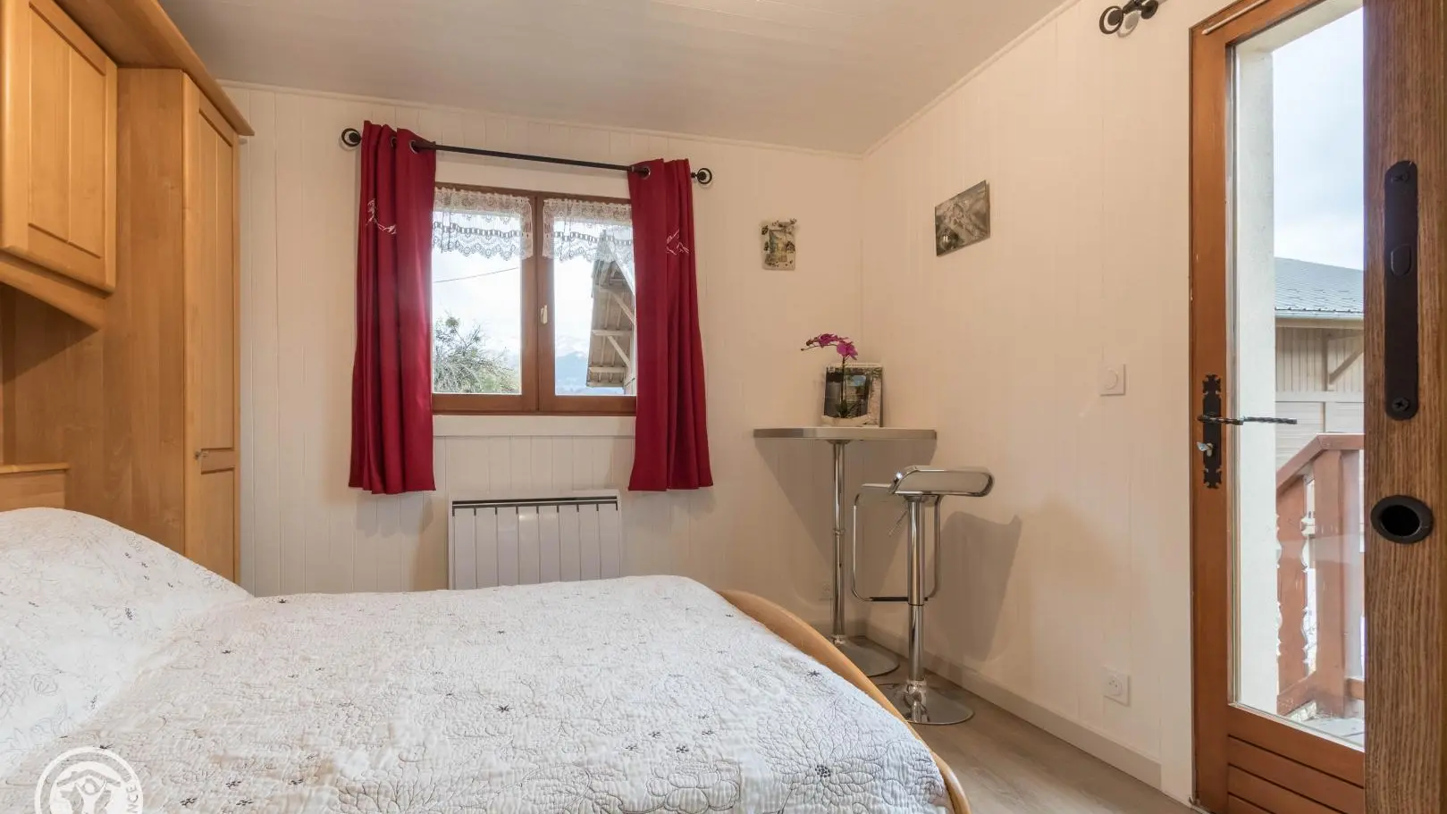 Au coeur d'une exploitation agricole, offrant une vue panoramique sur les chaînes des Fiz, des Aravis et du Mont-Blanc, maison indépendante de 37 m2. Cuisine ouverte sur séjour, m-ondes (BZ 1 pers.), 1 chambre (1 lit 2 pers.), 1 petite chambre (2 lits ...