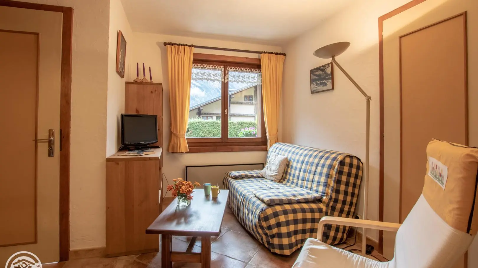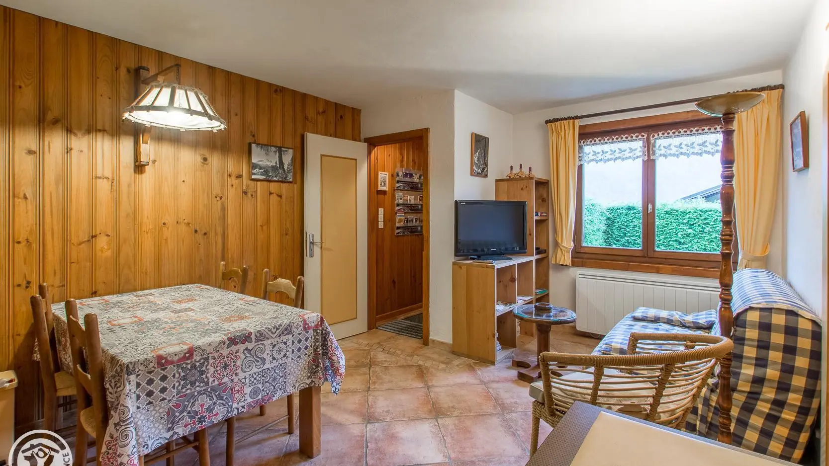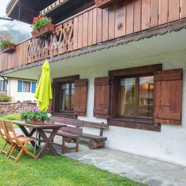 Sur les pentes du Brévent (plein Sud), face à la chaîne du Mt-Blanc, gîte unique de 52 m2 au rez de jardin du chalet des propriétaires dans un village très calme. Séjour (BZ)/coin cuisine, 2 ch (1 lit 2 pers. 2 lits 1 pers.). Salle d'eau/wc, buanderie ...