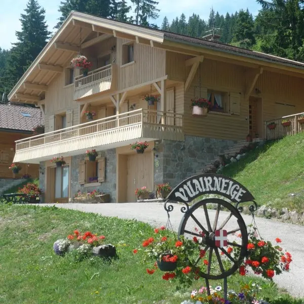 Face au magnifique panorama de la Tournette et de la chaîne des Aravis, notre chalet se situe à 50 m des pistes.