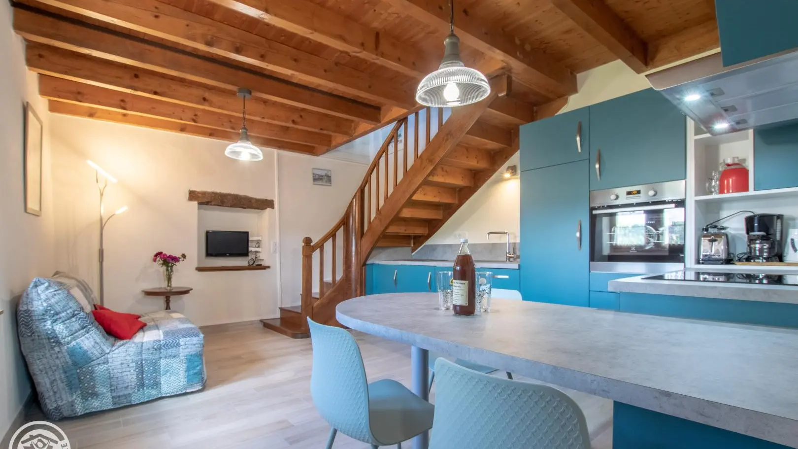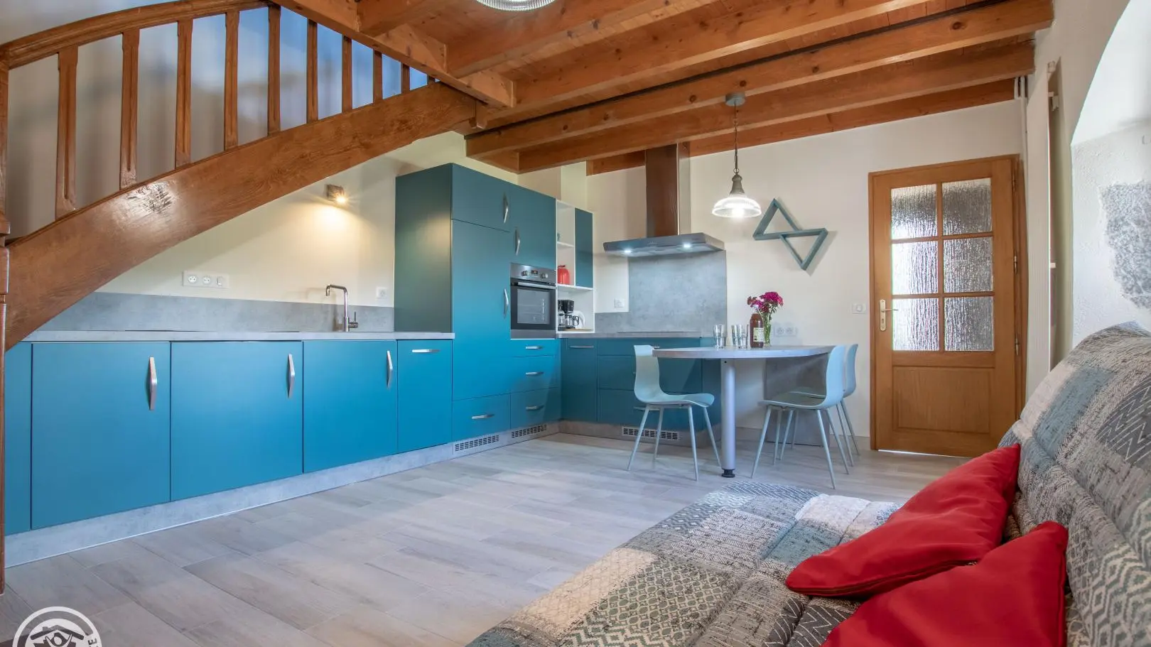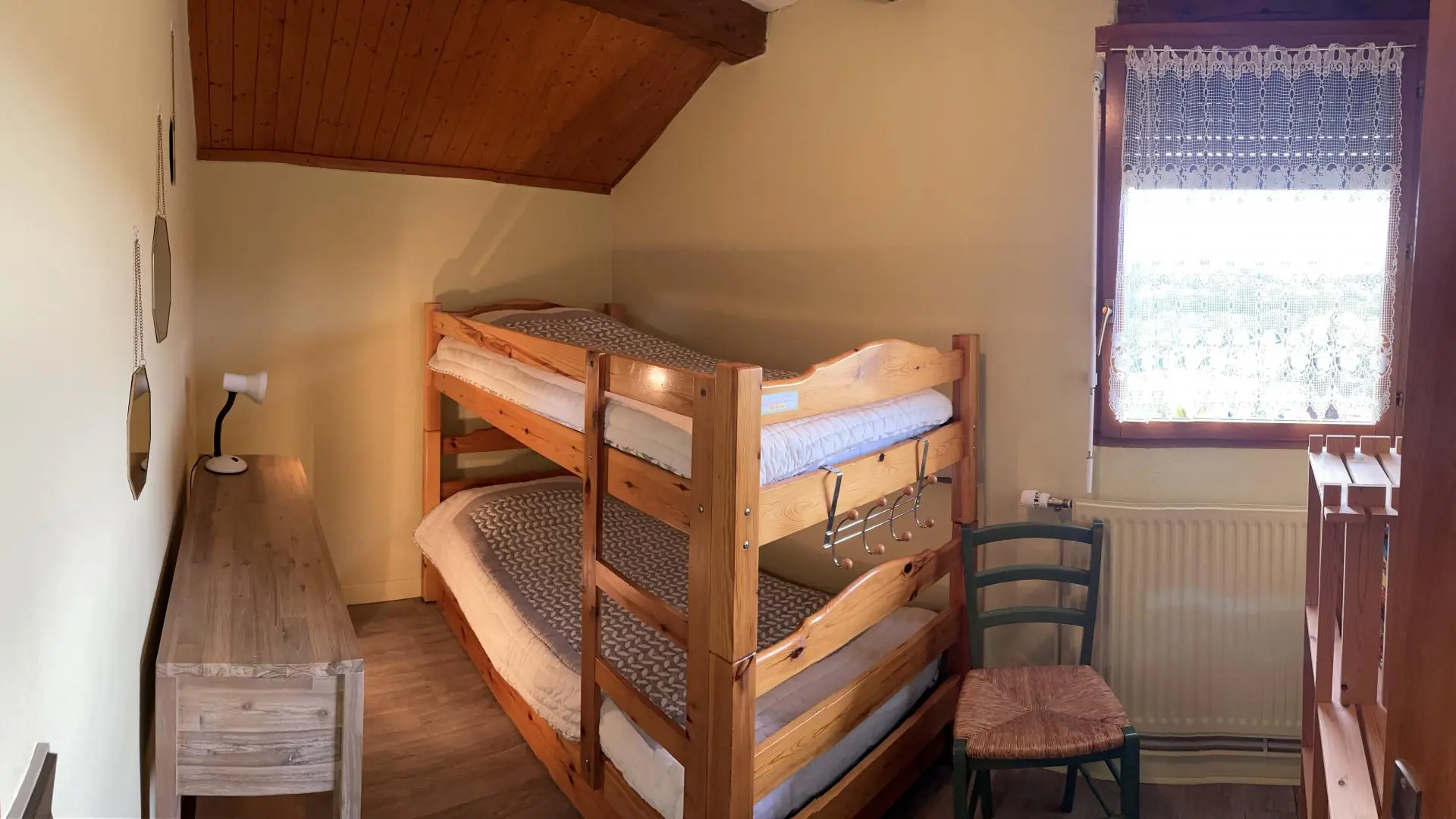 Au coeur de l'avant pays, gîte de 37 m2 aménagé au 1er étage d'une ancienne maison comprenant 2 logements des propriétaires. Cuisine / séjour, à l'étage : en mezzanine/palier (1 lit 140 cm), petite chambre (2 lits 90 cm superposés), salle d'eau / wc. C...
