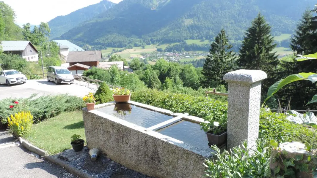 Entre lac et montagne, 1er village de la vallée d'abondance, expo plein sud, vue imprenable, Gîte de 42 m2 aménagé au 1er étage de la maison des propriétaires. Cuisine, 2 chambres (2 lits 2 pers, 1 lit 1 pers, et 1 lit bébé), douche avec wc. Location d...