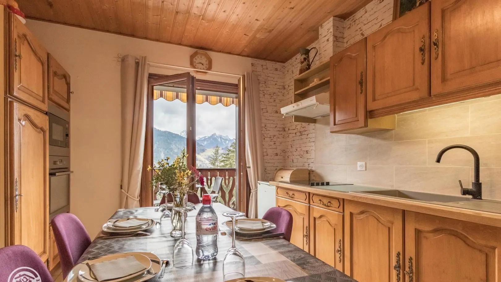 Entre lac et montagnes, premier village de la vallée d'abondance, vue imprenable et exposition plein sud pour ce gîte de 42m² aménagé au 1er étage (depuis parking) d'une maison comprenant le logement des propriétaires et une autre location. Cuisine ouverte sur séjour (accès balcon), 2 chambres (Chambre 1: 1 lit 140, 1 lit 90 et Chambre 2 : 1 lit 140), salle d'eau/WC (douche). Chauffage électrique. Balcon, terrasse au rez-de-chaussée (salon de jardin, chaises longues, barbecue), grand terrain. Lave-linge au sous-sol. Thonon-les-Bains 15 km, Evian 13 km, Station de ski la plus proche Bernex 4 km.