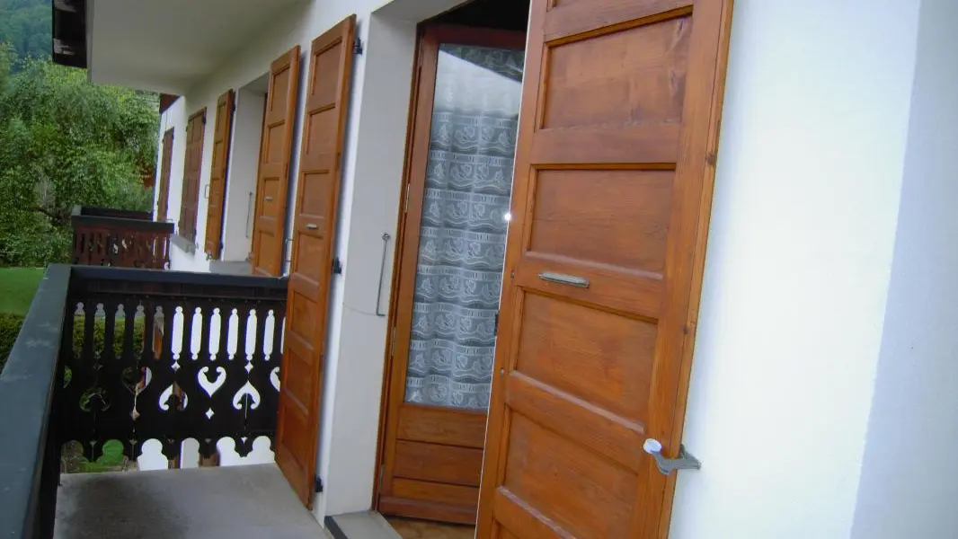 Maison comprenant 3 gîtes et le logement des propriétaires. 1er gîte de 40 m² au 1er étage : petite cuisine ouverte sur séjour (1 clic-clac), 1 chambre (1 lit 140), salle d'eau, wc indépendant, chauffage central, balcon, terrain commun, espace extérieur avec pelouse et salon de jardin. Lave-linge commun avec le propriétaire. Location de draps. Station de ski : Morzine 2,5 km. Navette gratuite à 50m. 1 seul animal accepté.
