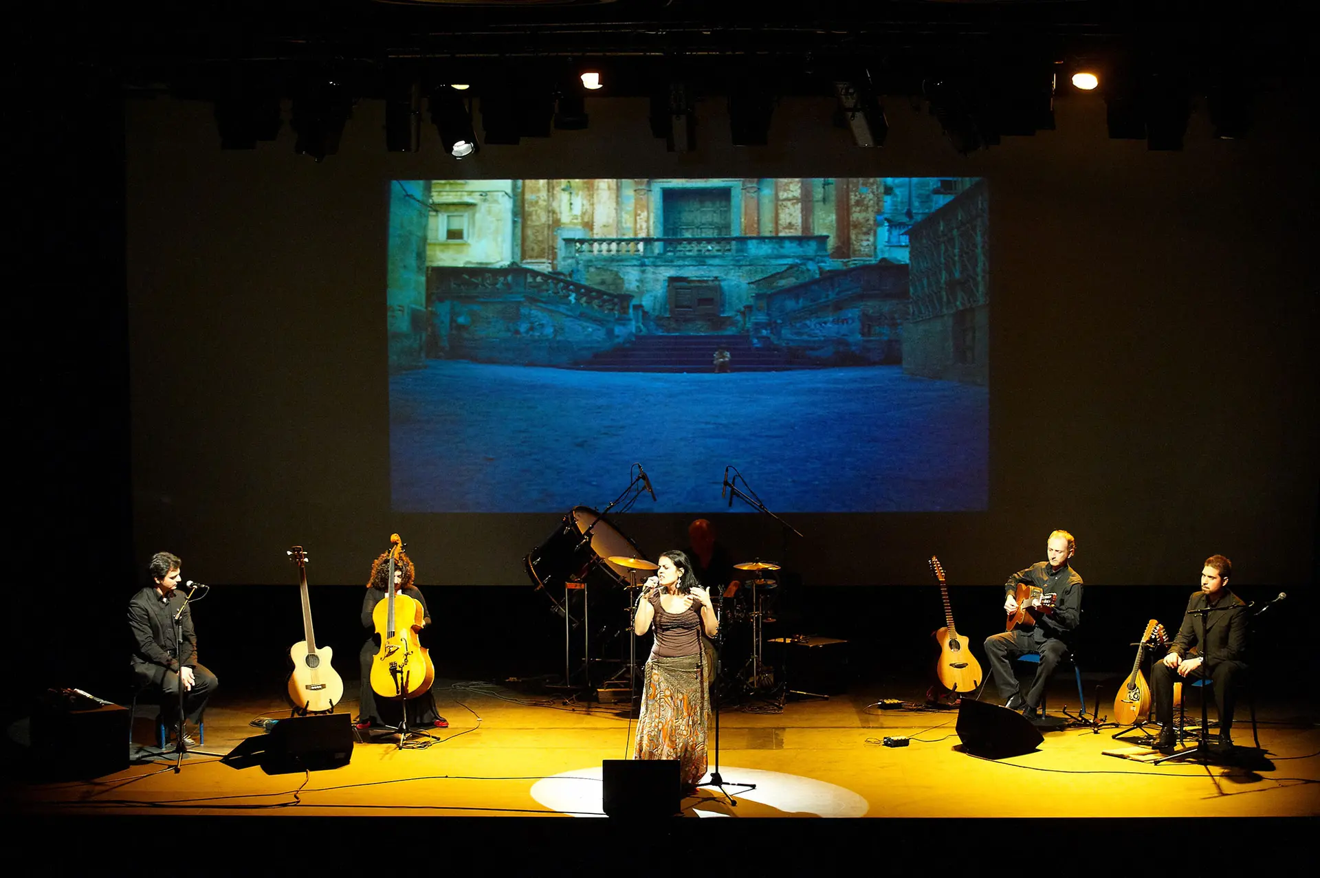 Sur les murs de la cité, on peut voir les dessins iconiques du plasticien Ernest Pignon-Ernest qui a fait de la rue le lieu même d’un art éphémère qui en exalte la mémoire, les événements ou les mythes. Ses dessins coups de poing, enracinés dans le réel, soulignent drames et destins de notre temps. Au cœur de l’Ensemble, la voix chaleureuse de Maria Marone, tout en sensualité, glisse la mélancolie des amours impossibles, se fait mordante pour conter les luttes sociales, ou s’endiable brusquement dans le débit torrentiel des tarentelles. Sur scène, on retrouve la démesure d’une métropole volcanique. En guise de fil rouge, les musiciens se laissent guider par un texte de Pasolini, une mise en garde sur les possibles dictatures à venir, les fascismes futurs. Un écrit de 1962 sidérant de lucidité.