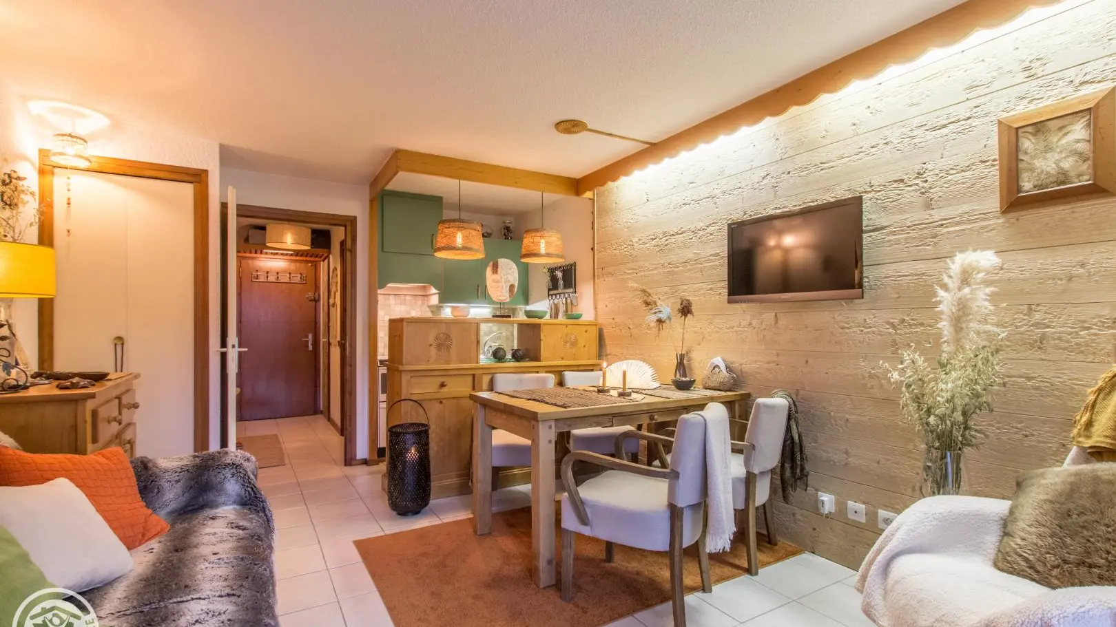 Emplacement idéal : proximité des commerces et restaurants, de l'arrêt navette pour le ski, et du plan d'eau biotope.