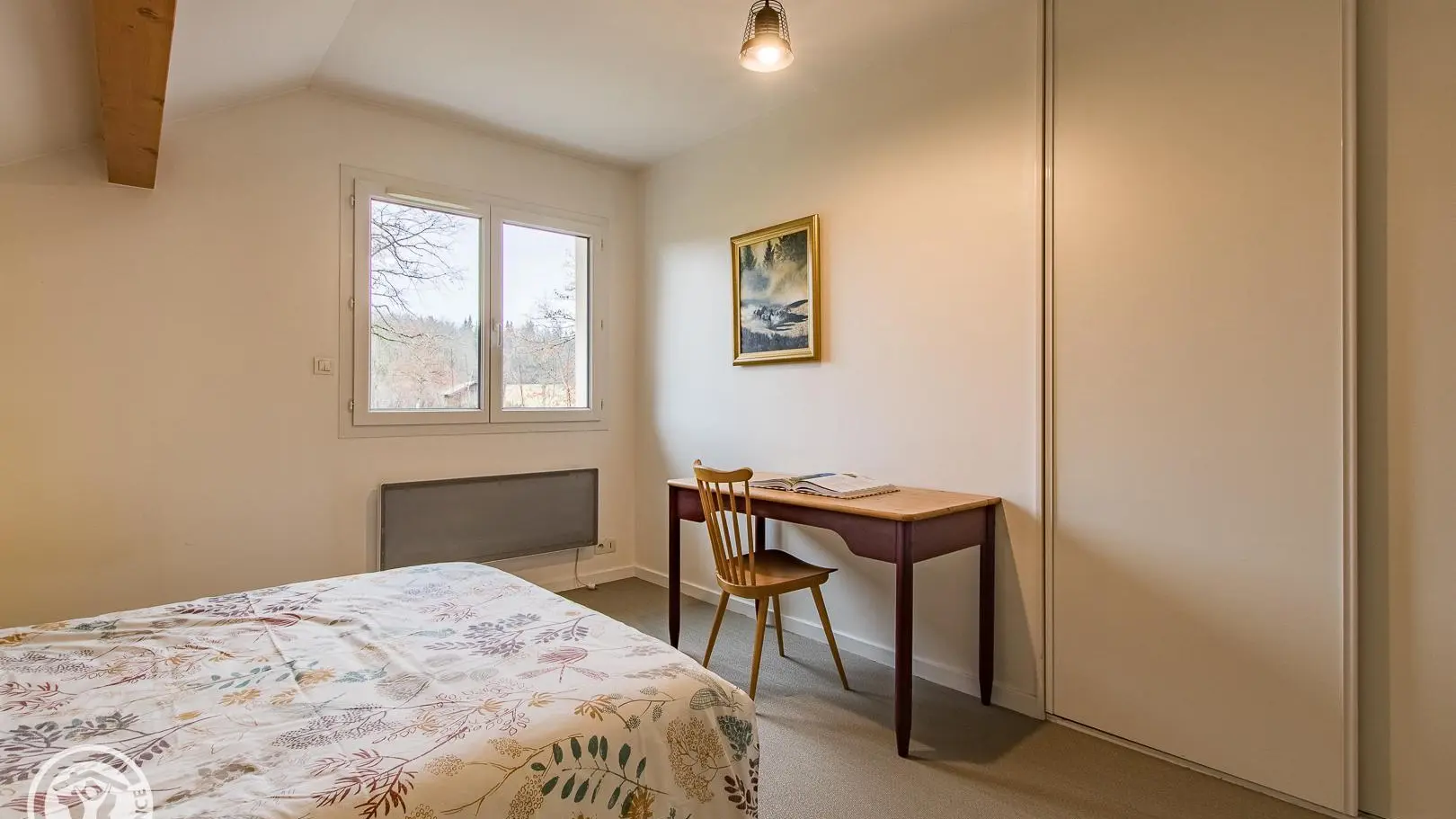 Appartement de 61 m² aménagé au 1er étage de la belle maison des propriétaires (occupent le rez-de-chaussée), située dans un environnement privilégié sur les hauteurs d'Annecy (secteur résidentiel d'Annecy-le-Vieux).
