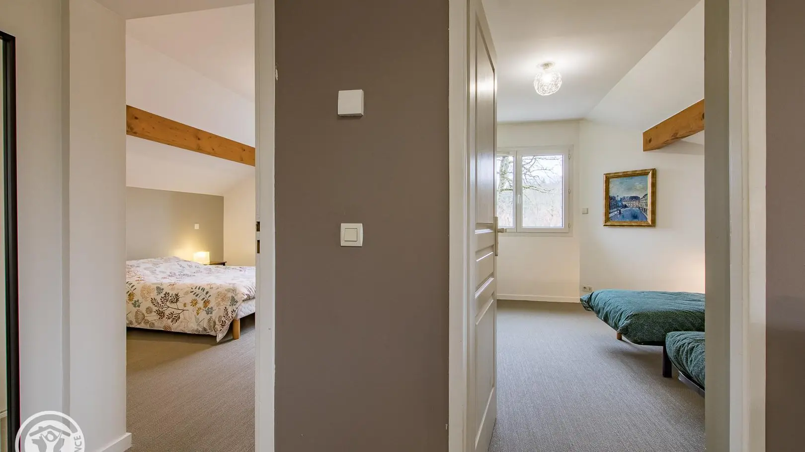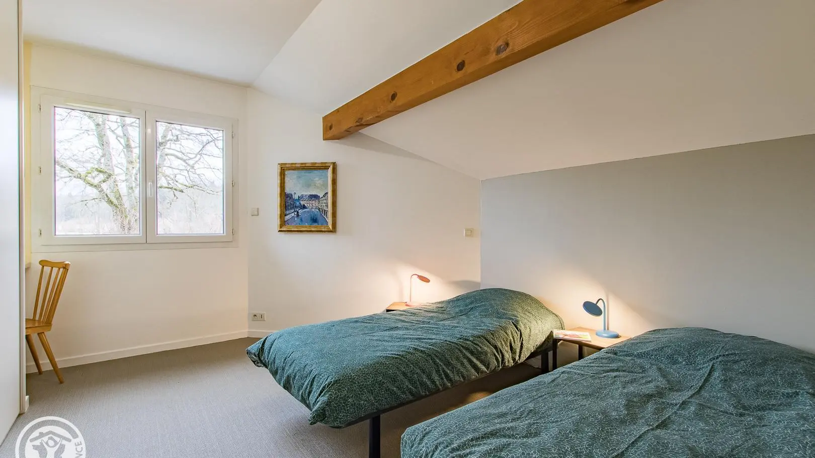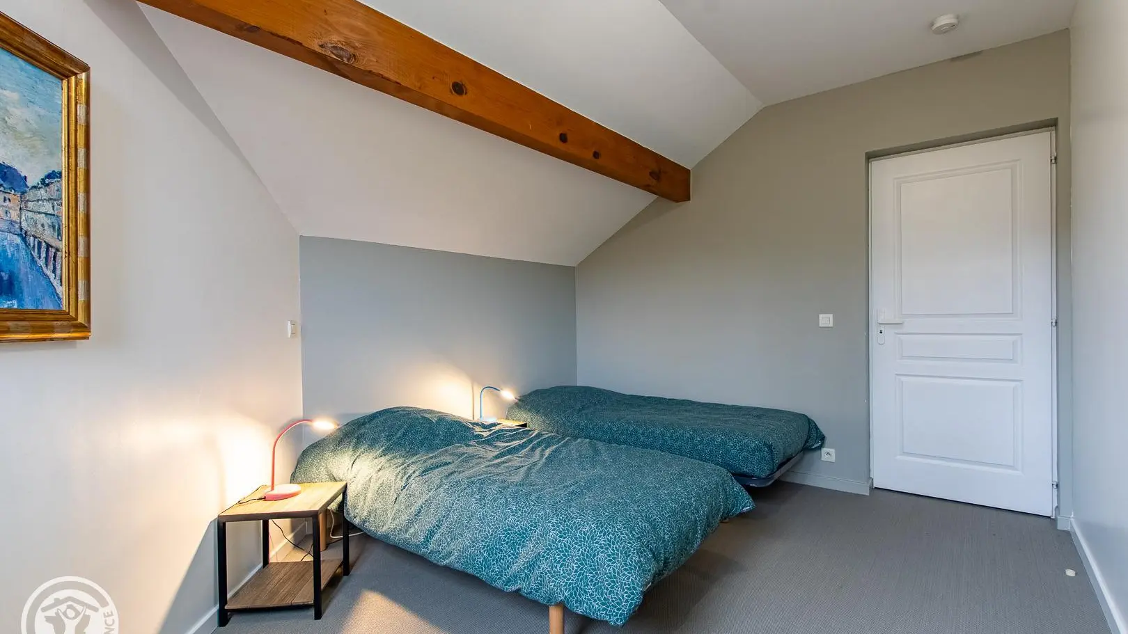 - Chambre 2 : 2 lits 90x190cm jumelables permettant de créer 1 lit double sur demande.