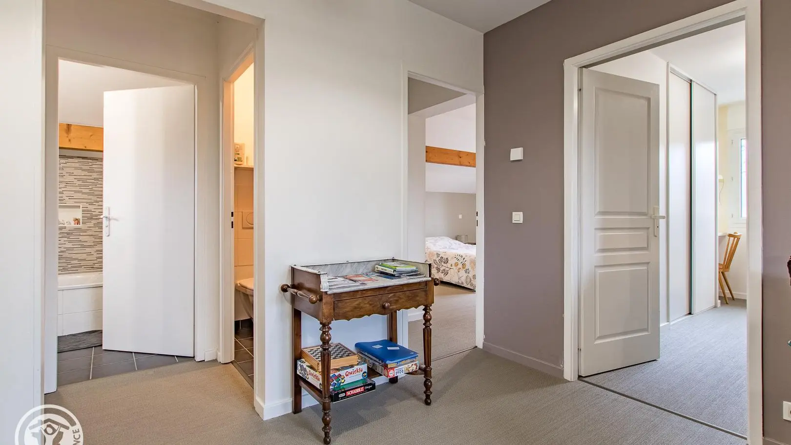 Hall d'entrée commun puis entrée du gîte à l'étage.