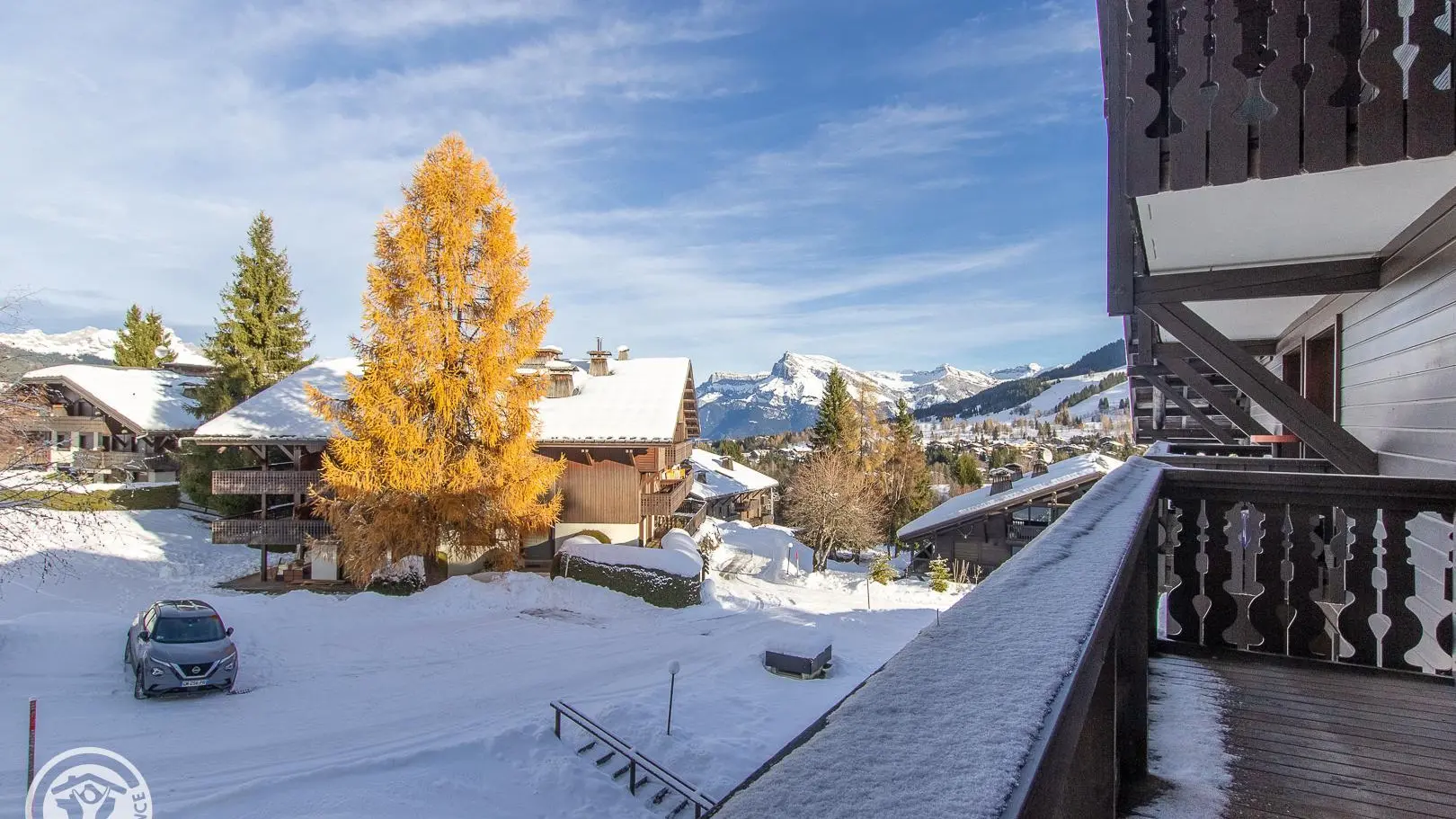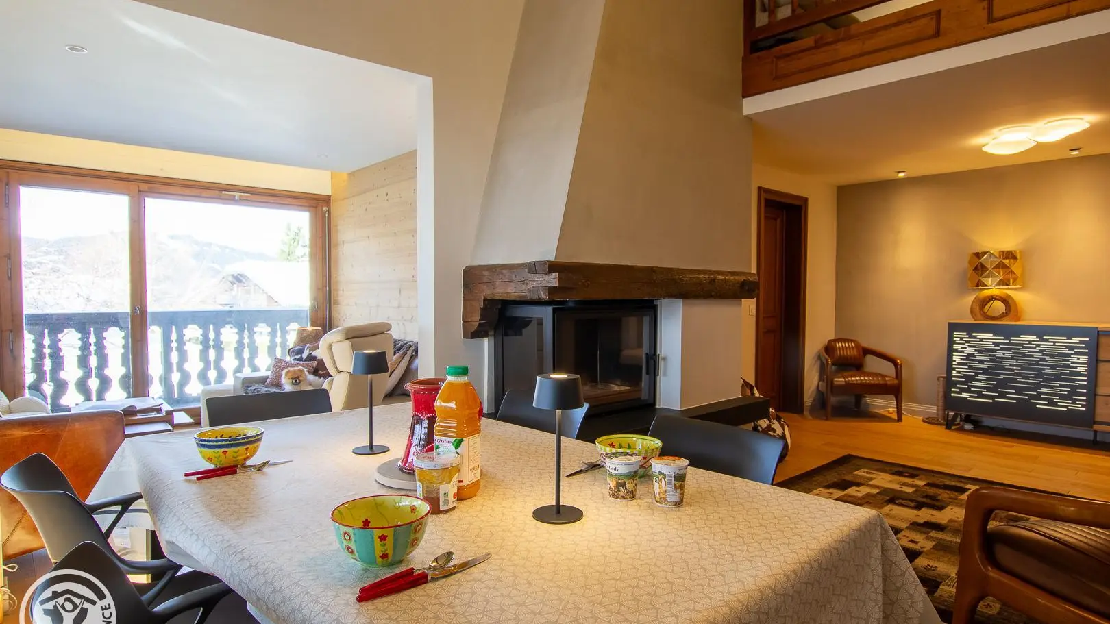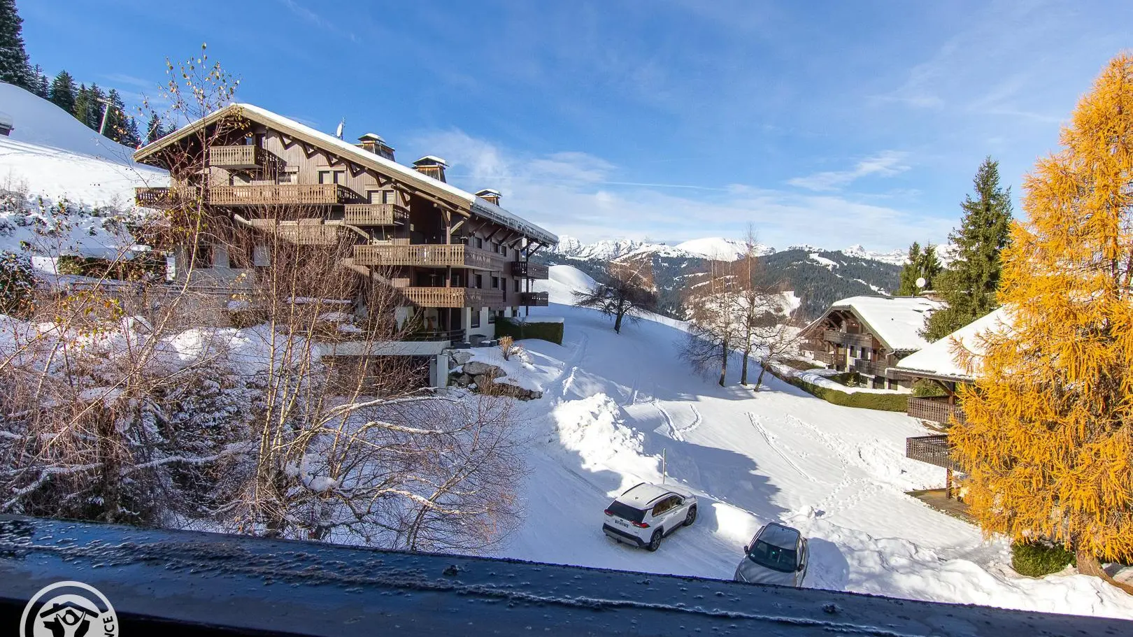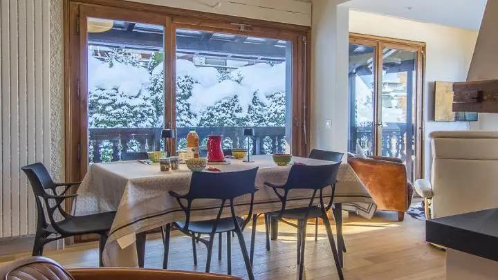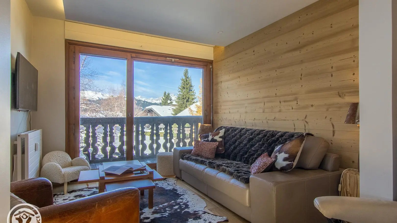 Spacieux et chaleureux appartement de 85m2 aménagé en duplex au sein d'une copropriété de standing nichée sur les hauts de Megève, face à la chaîne des Aravis.