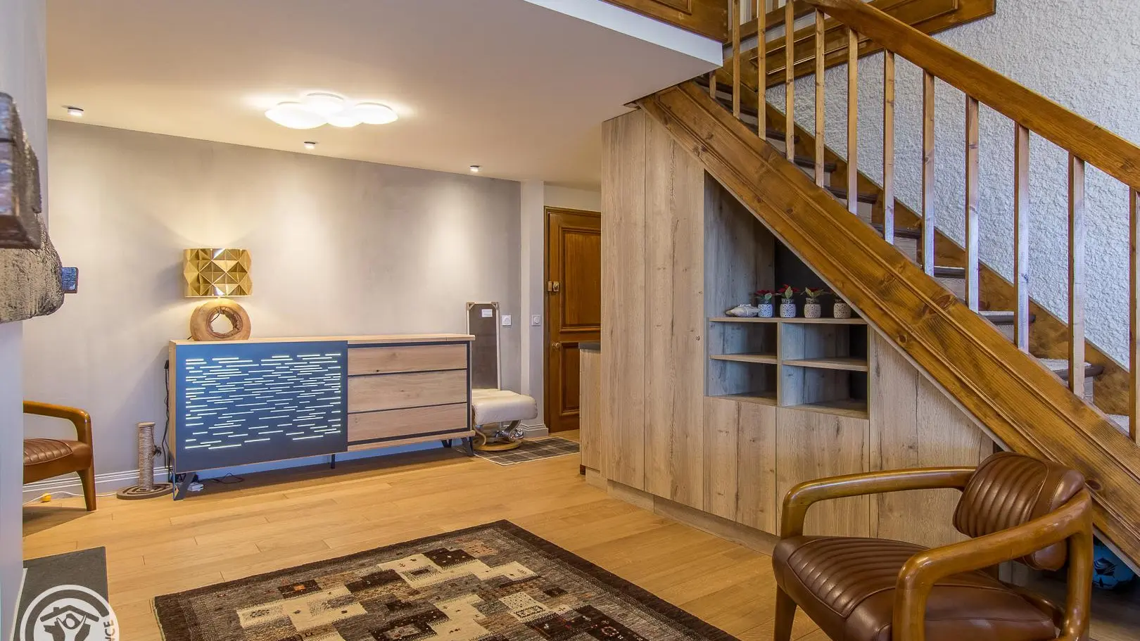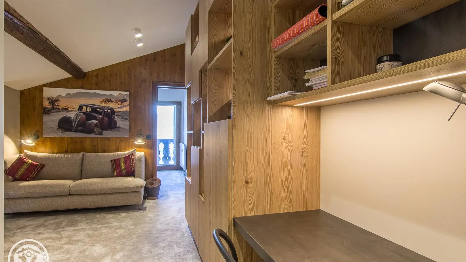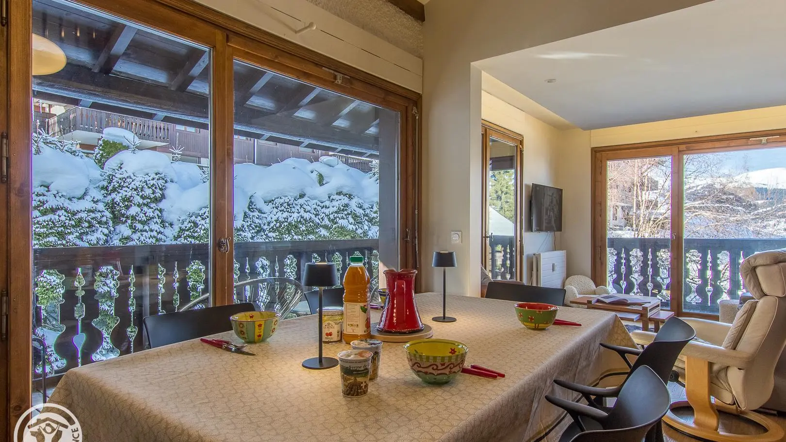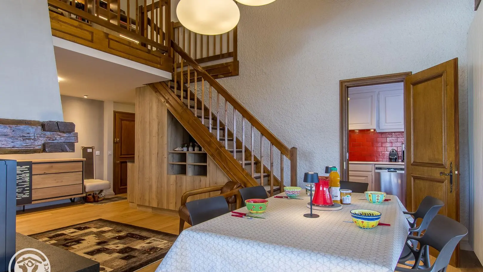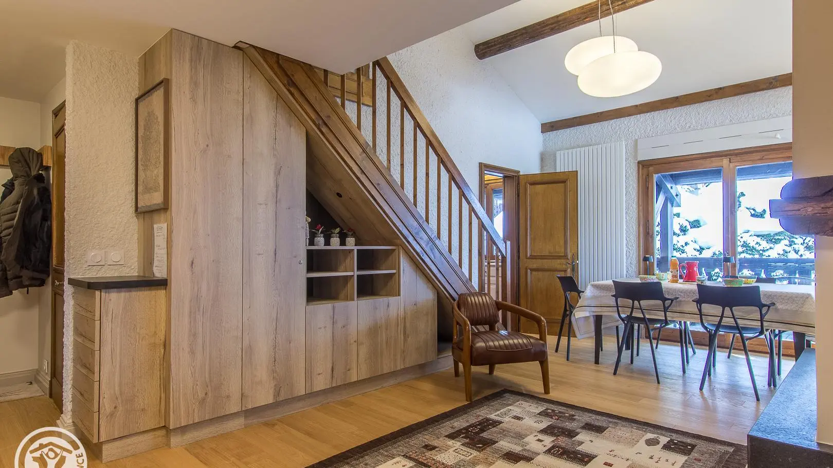 Spacieux et chaleureux appartement de 85m2 aménagé en duplex au sein d'une copropriété de standing nichée sur les hauts de Megève, face à la chaîne des Aravis.