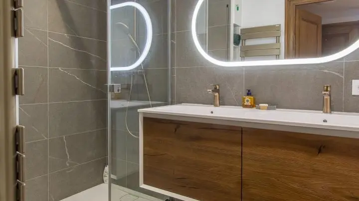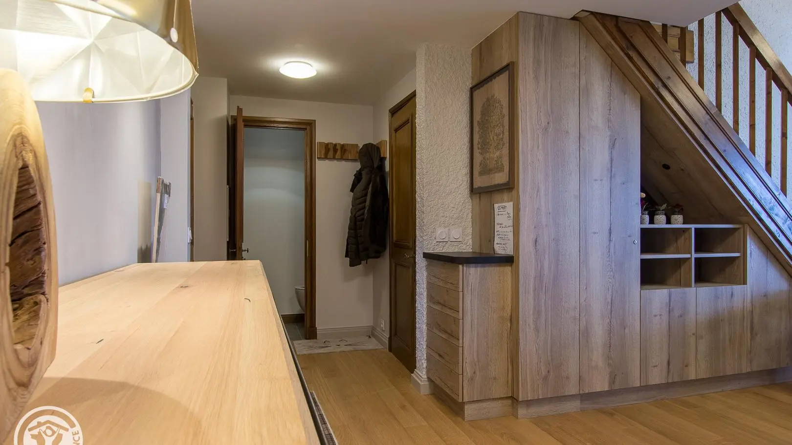 Niveau principal : cuisine indépendante, séjour/salon (espace repas, coin salon avec Tv), chambre 1 (1 lit 160x200cm), salle d'eau (douche à l'italienne), wc indépendant, vaste dégagement avec rangements intégrés.
